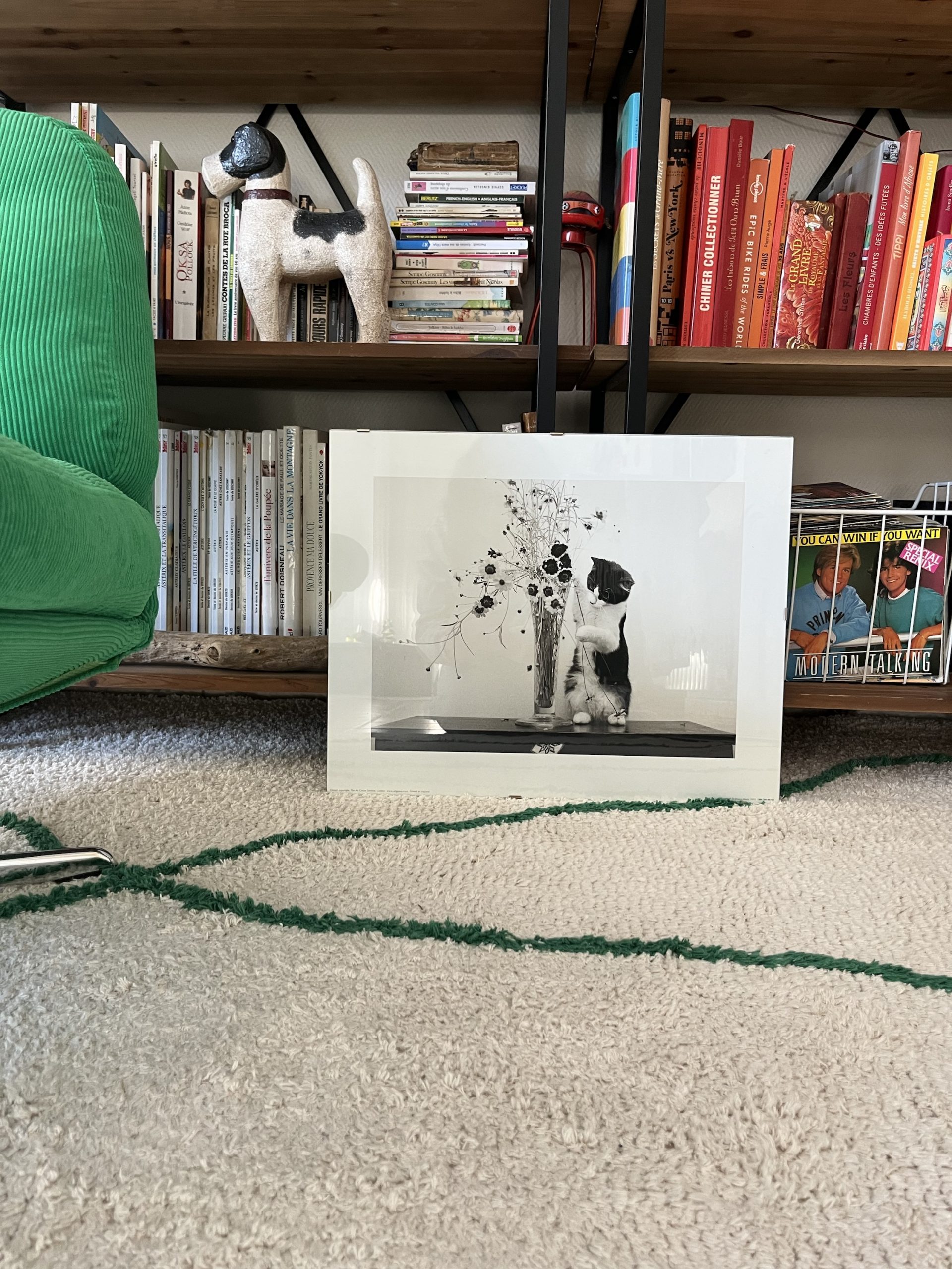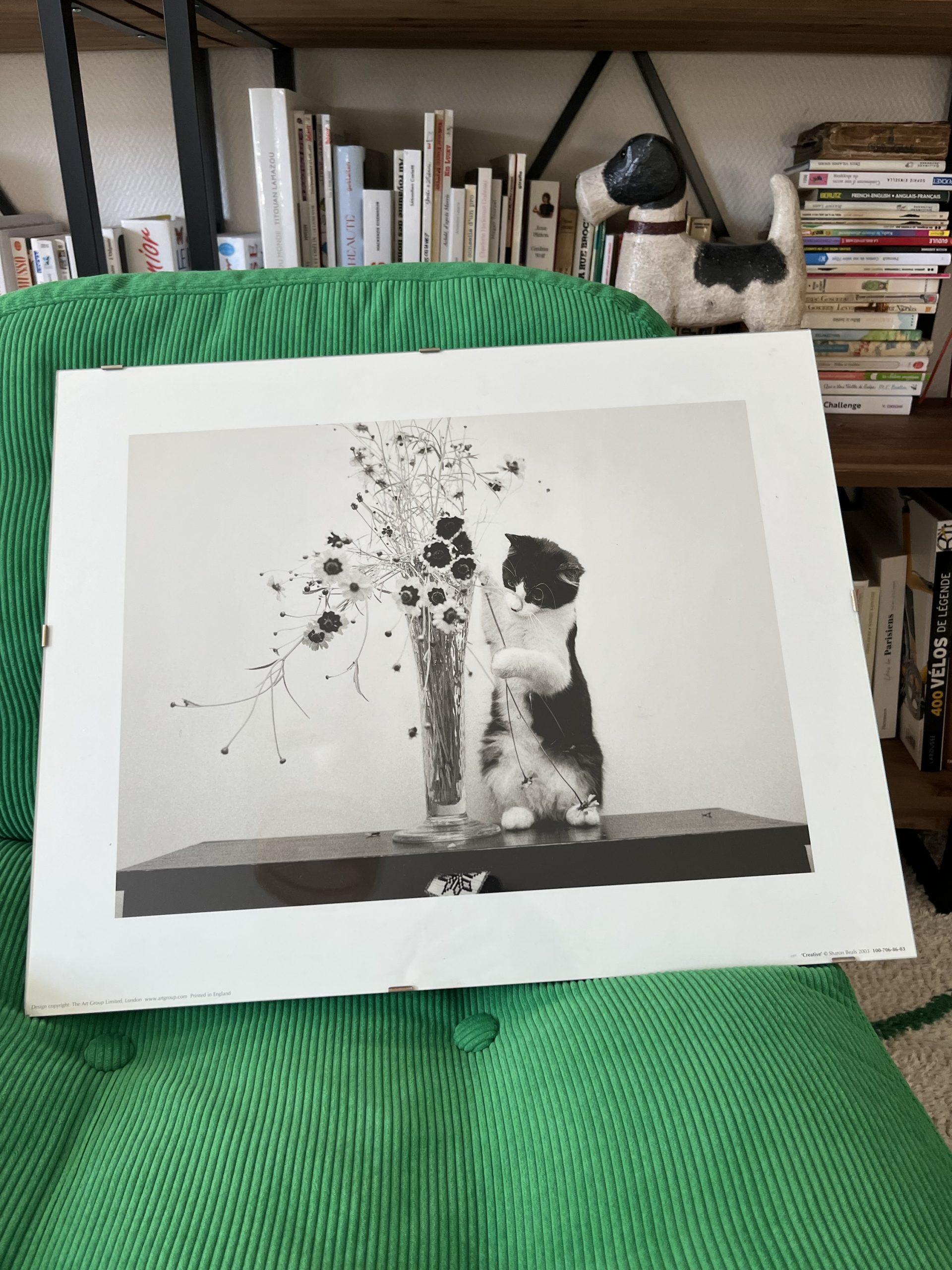 Cliché chat et le vase en noir et blanc