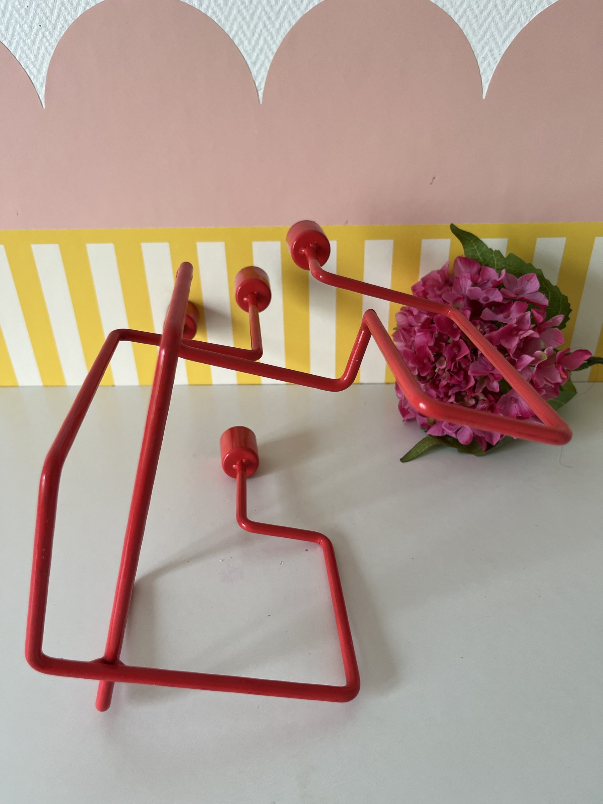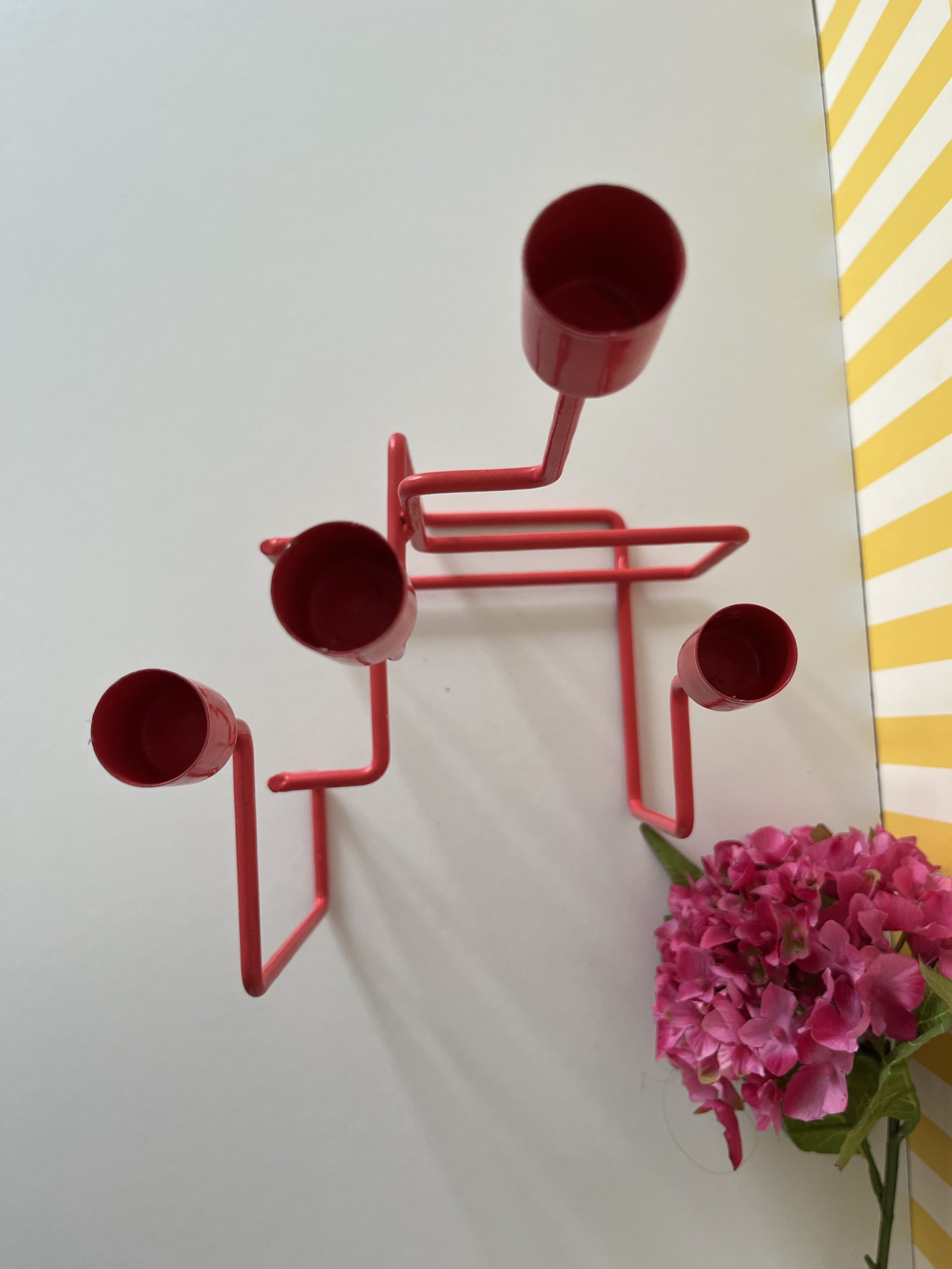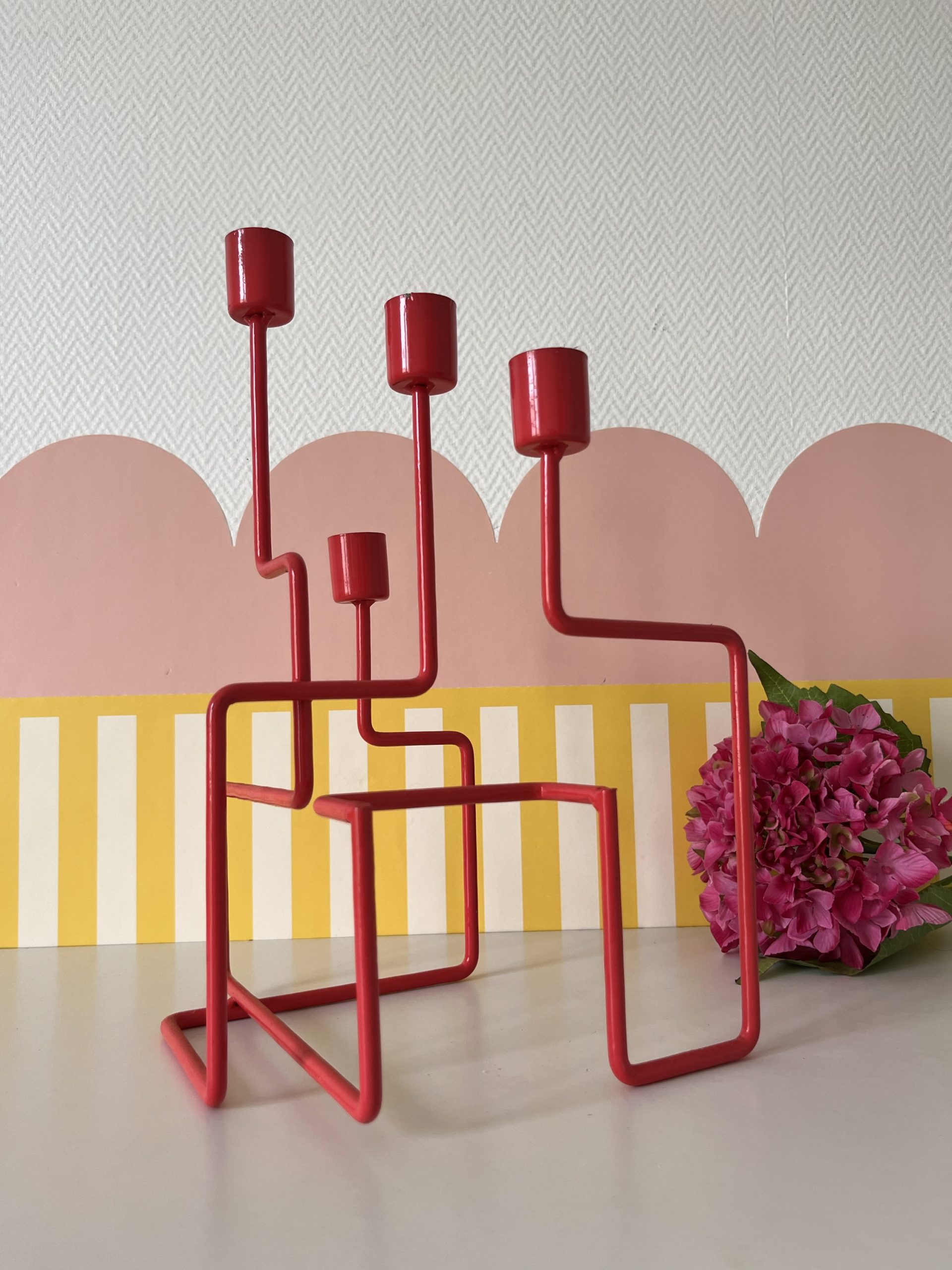 Joli bougeoir 4 bougies, en métal couleur corail, design vintage “the swedes”, pièce provenant d’une collaboration de jeunes designeurs suedois : Jessica Fryklund, Jonas Wannfors and Love Neuschütz qui se sont rencontrés au Beckman college of design.