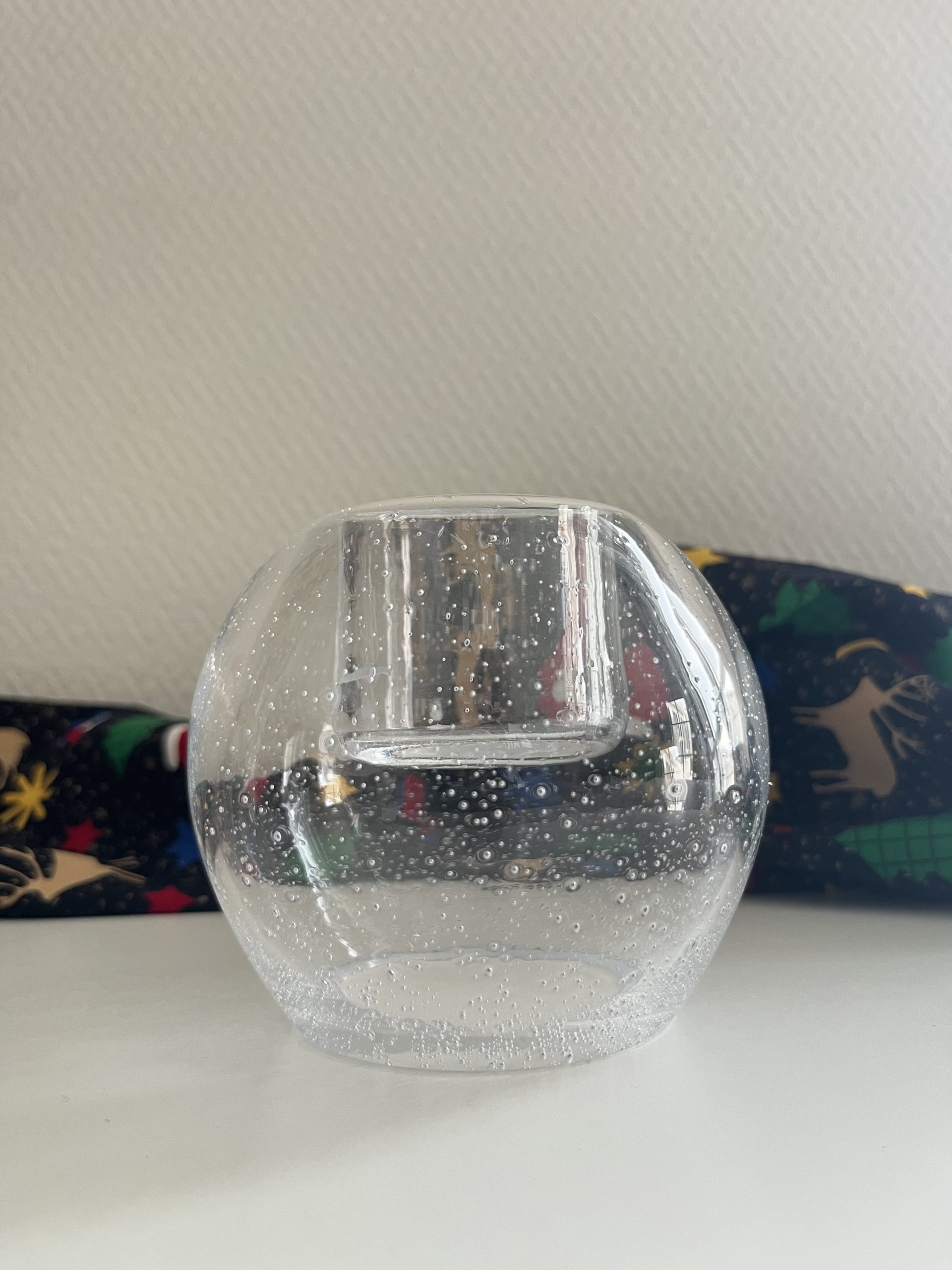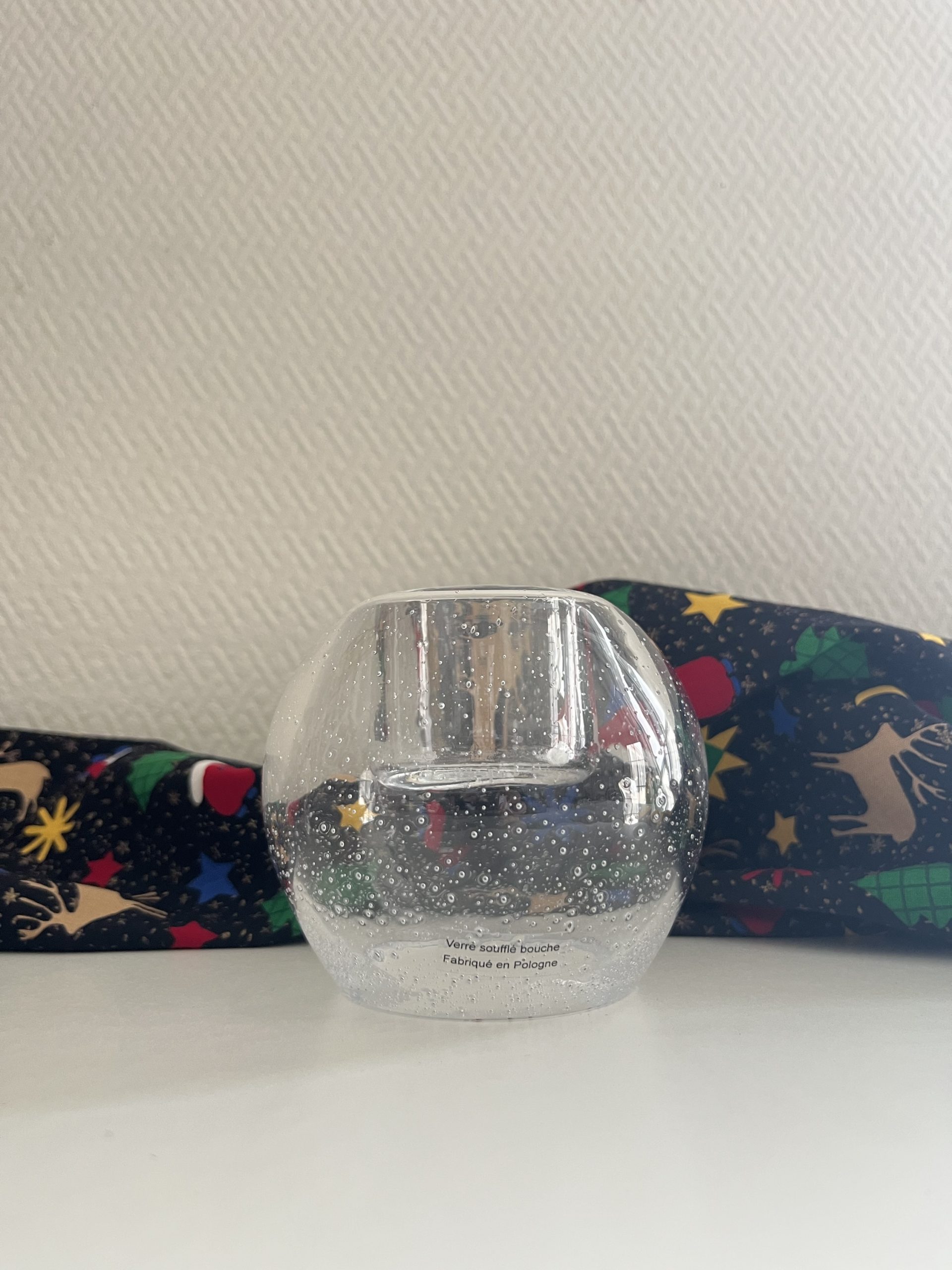 Superbe bougeoir en verre soufflé bouche made in Pologne ( étiquette d’origine), pour bougie type chauffe plat.