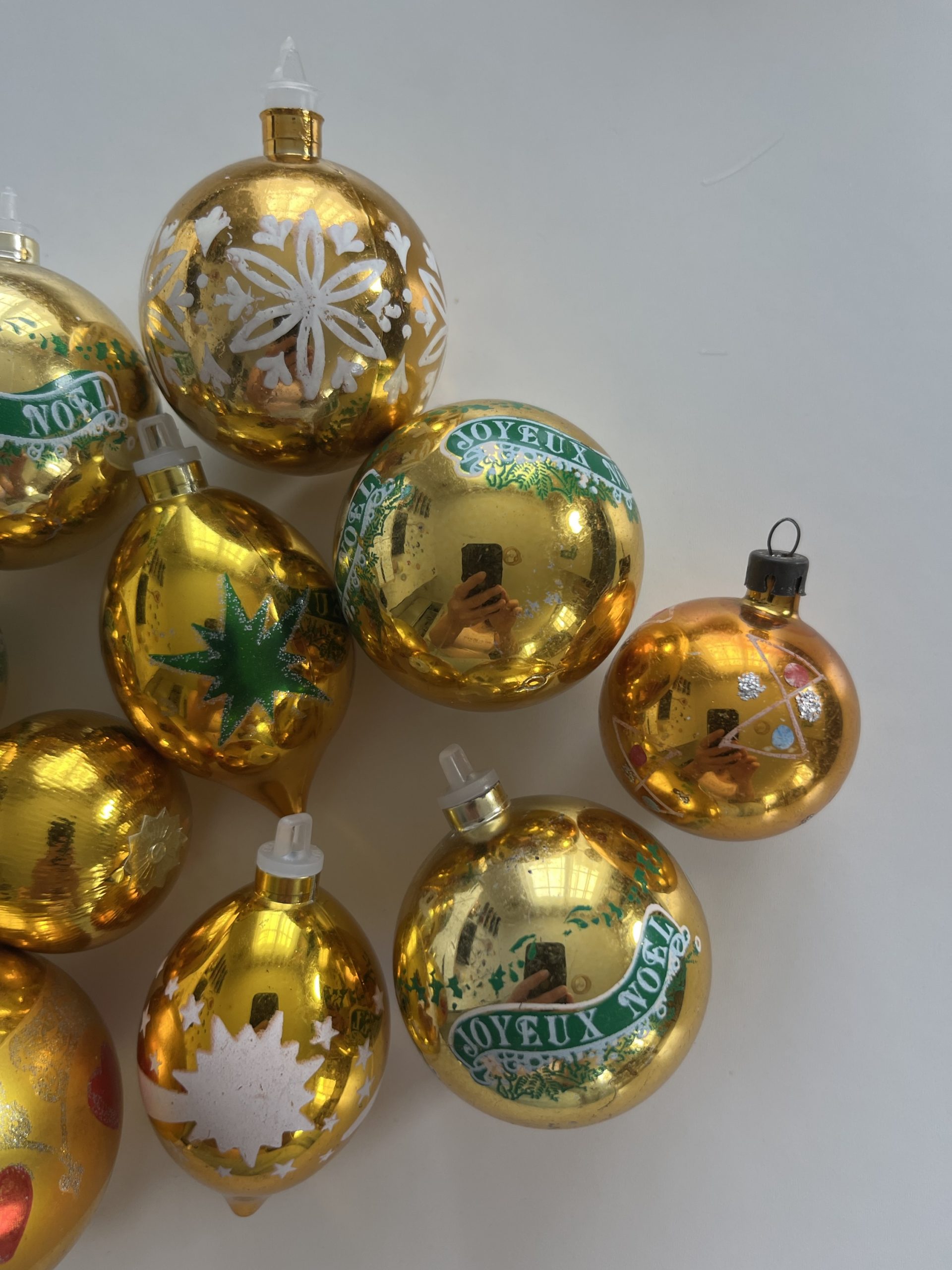 • lot  10 boules de noël vintage, certaines sont en verre, certaines sont peintes à la main.