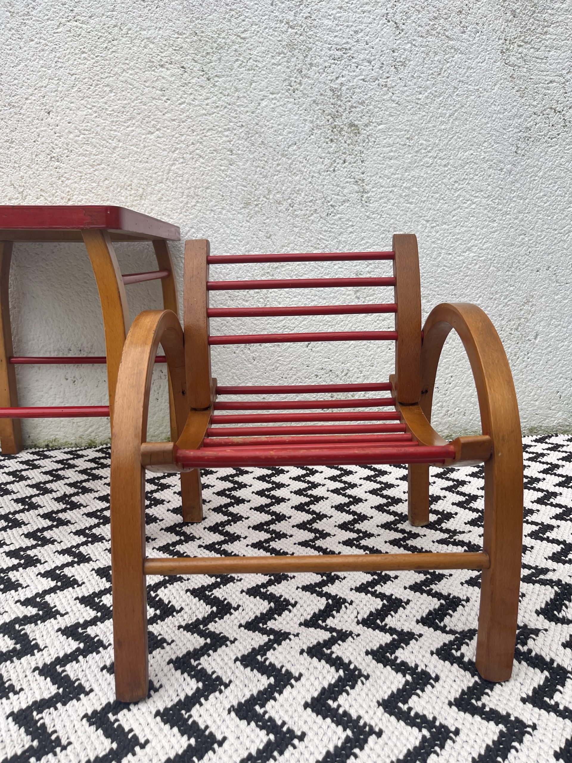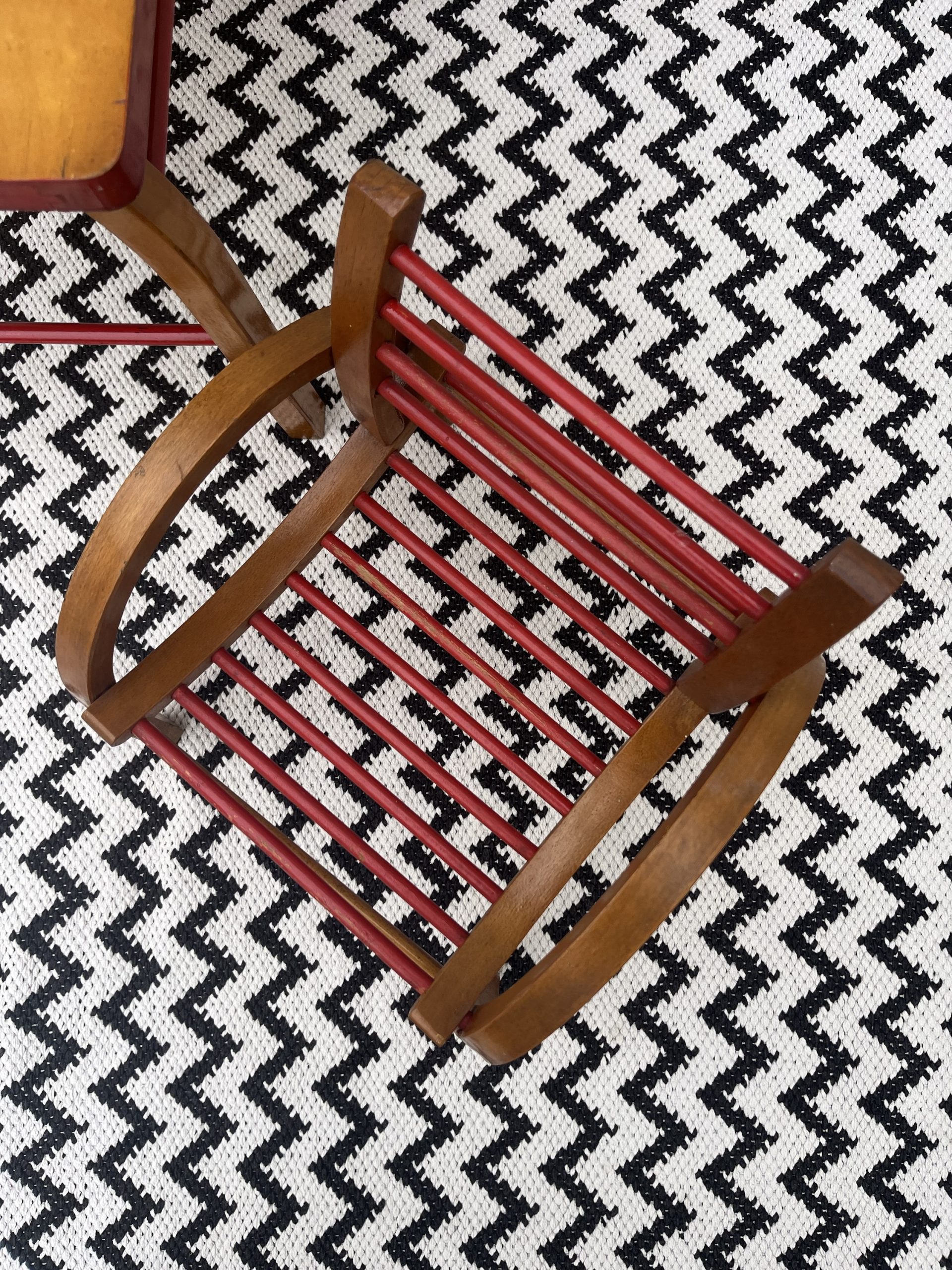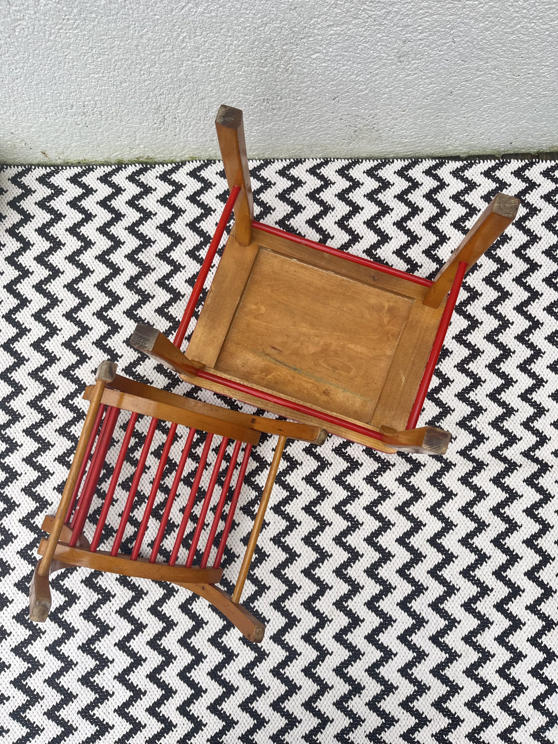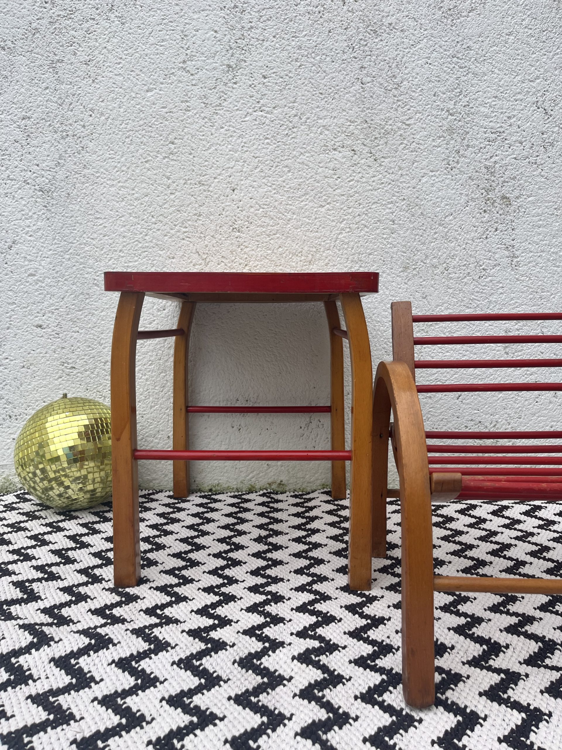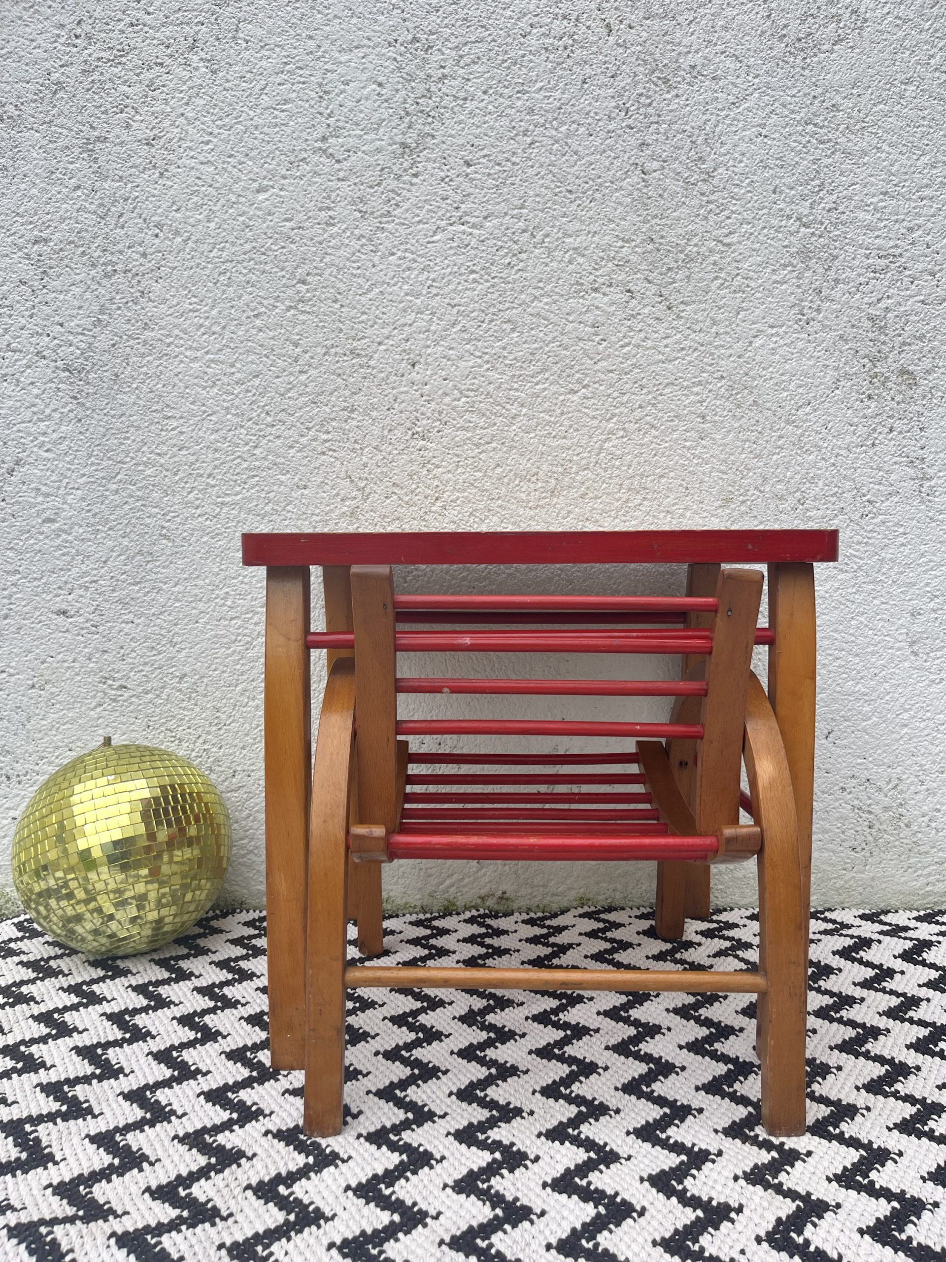 Des traces d’usage mais n’enlève en rien le bel esthétisme de l’ensemble, le bois est sain, robuste, l’assise est enveloppante et basse idéale pour les tout-petits.