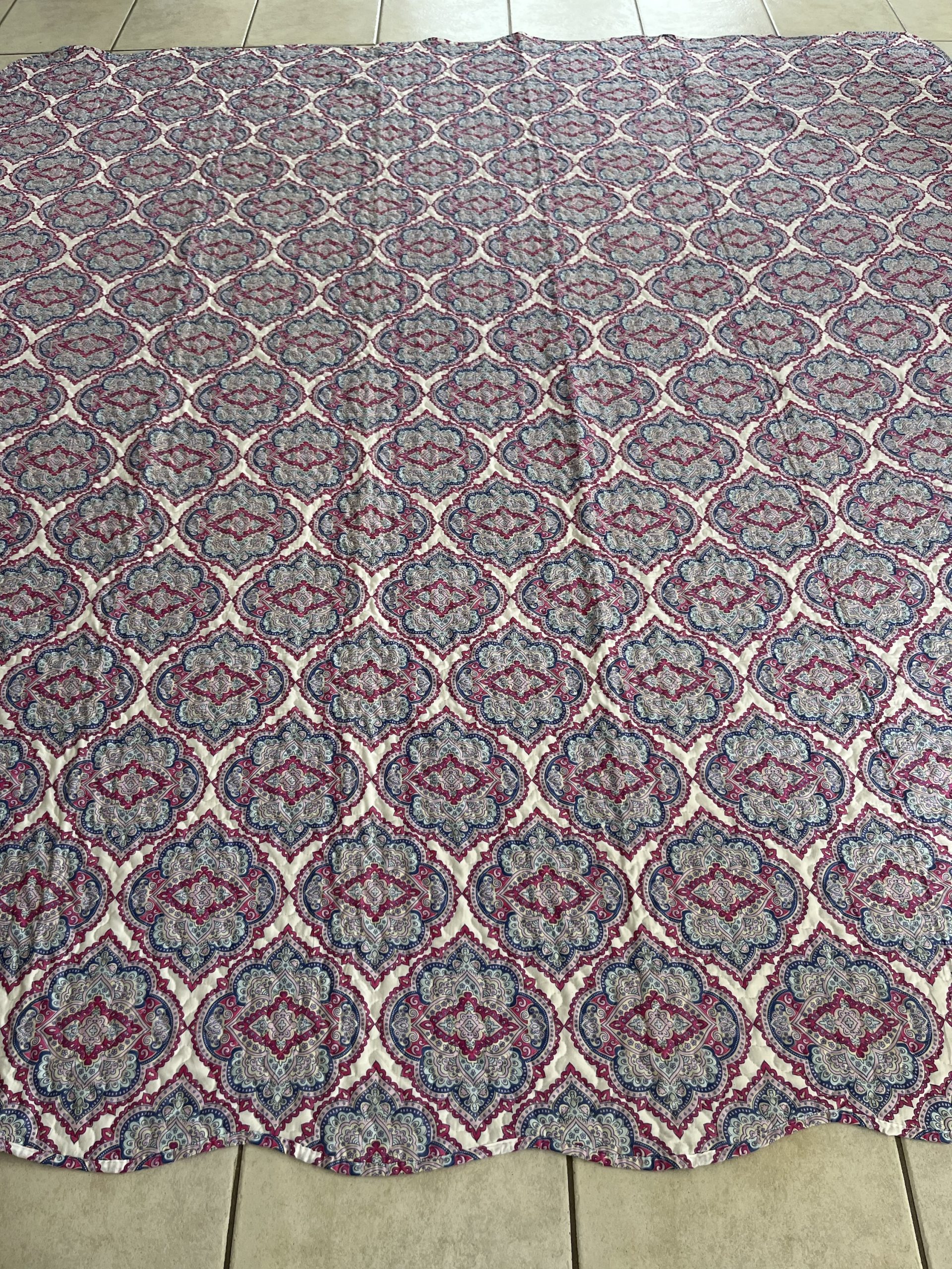 Couvre Lit vintage boutis, n’a jamais servit, état neuf, mesure 245x230cm.