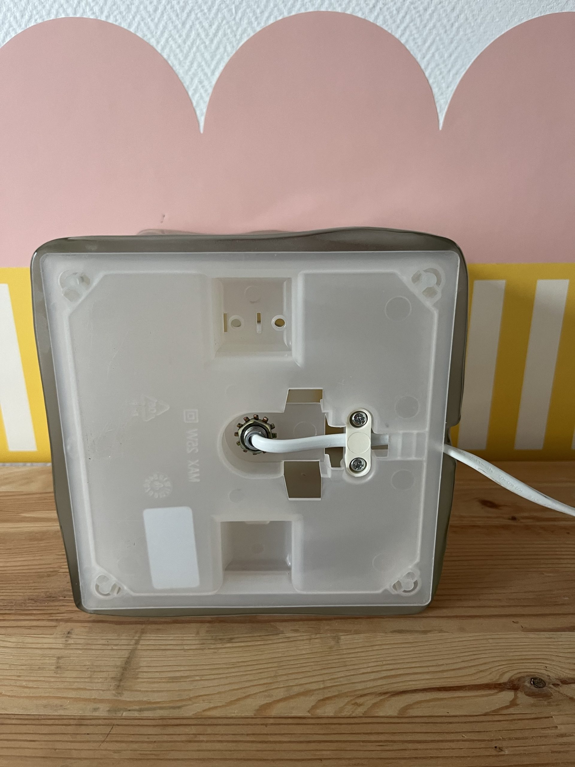 En parfait état, à interrupteur, ampoule à vis, mesure 15x15cm et 15cm de hauteur.