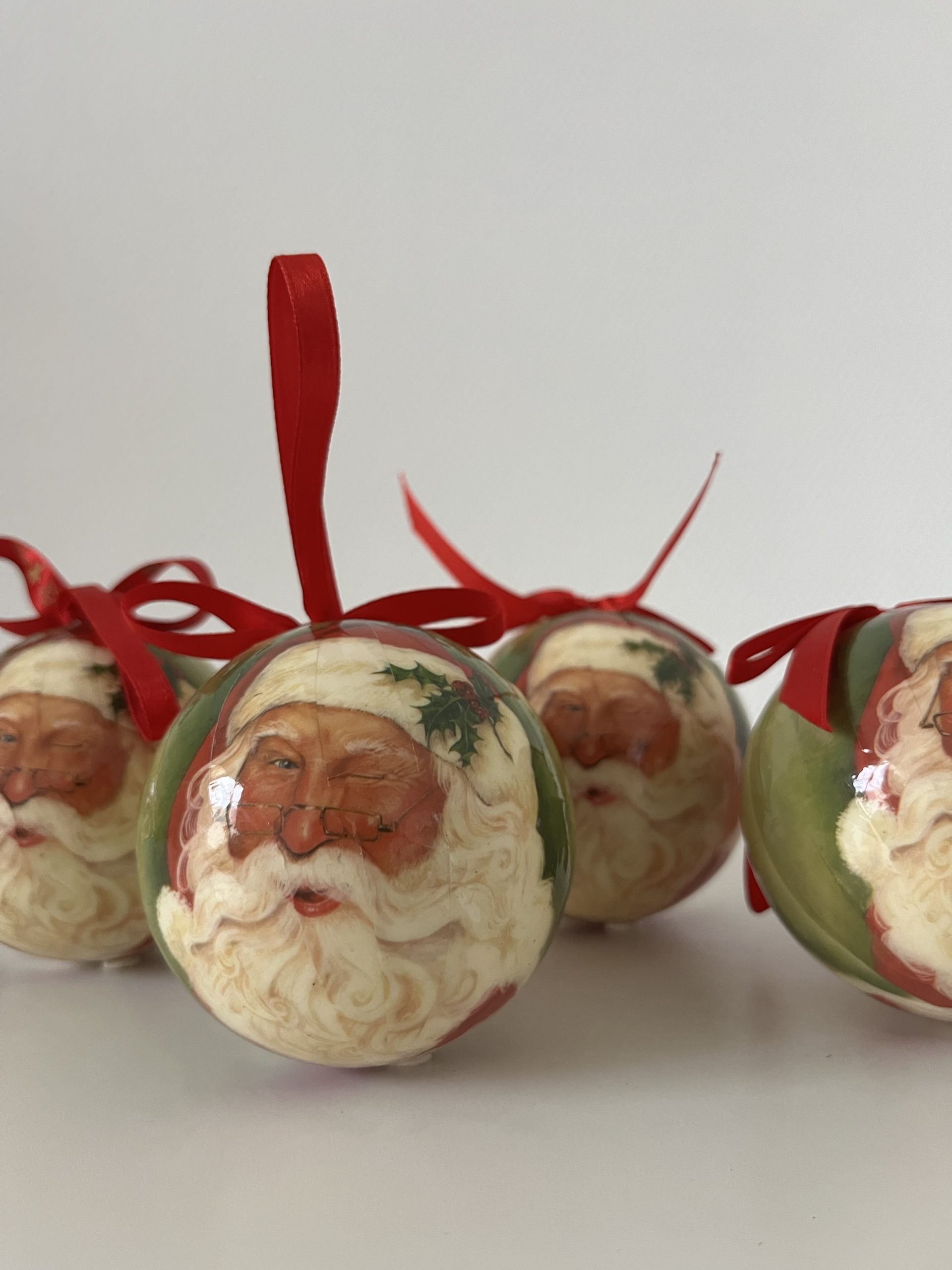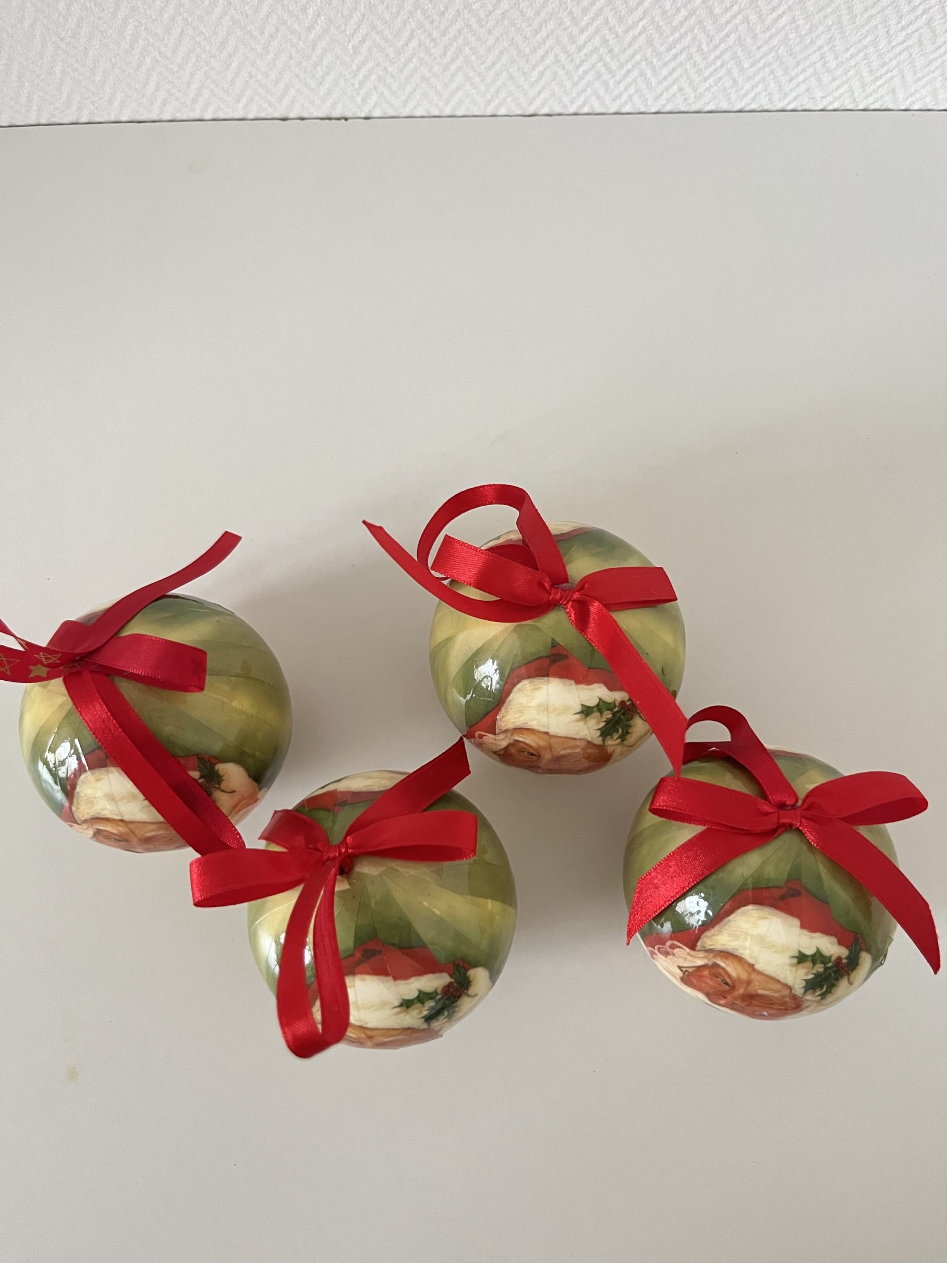 Joli lot composé de 4 boules de Noel n papier maché plastifié.