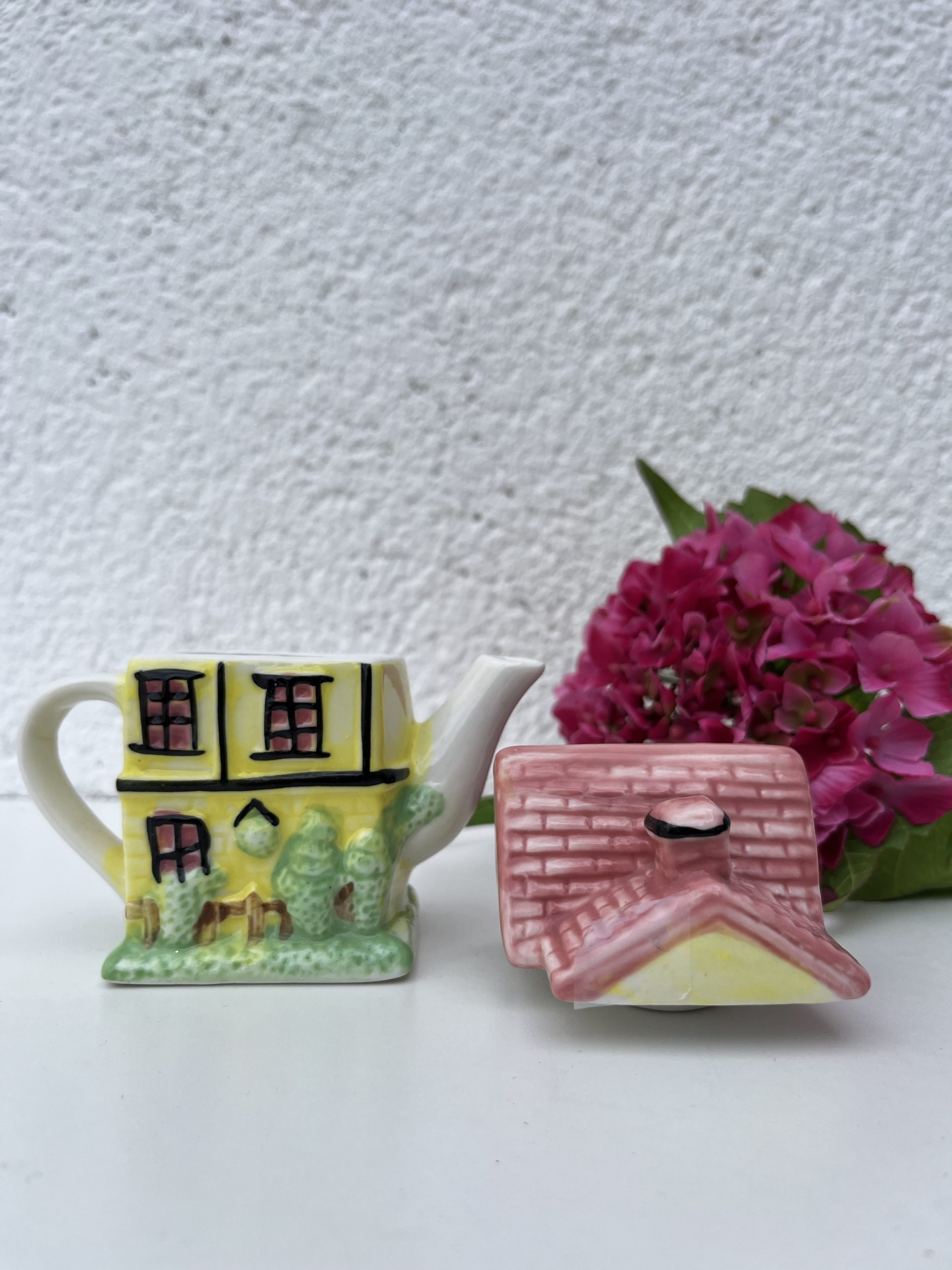 Comment ne pas craquer pour cette jolie petite théière en forme de maison cottage, utile pour servir le lait à l’heure du thé, mais aussi très décorative !