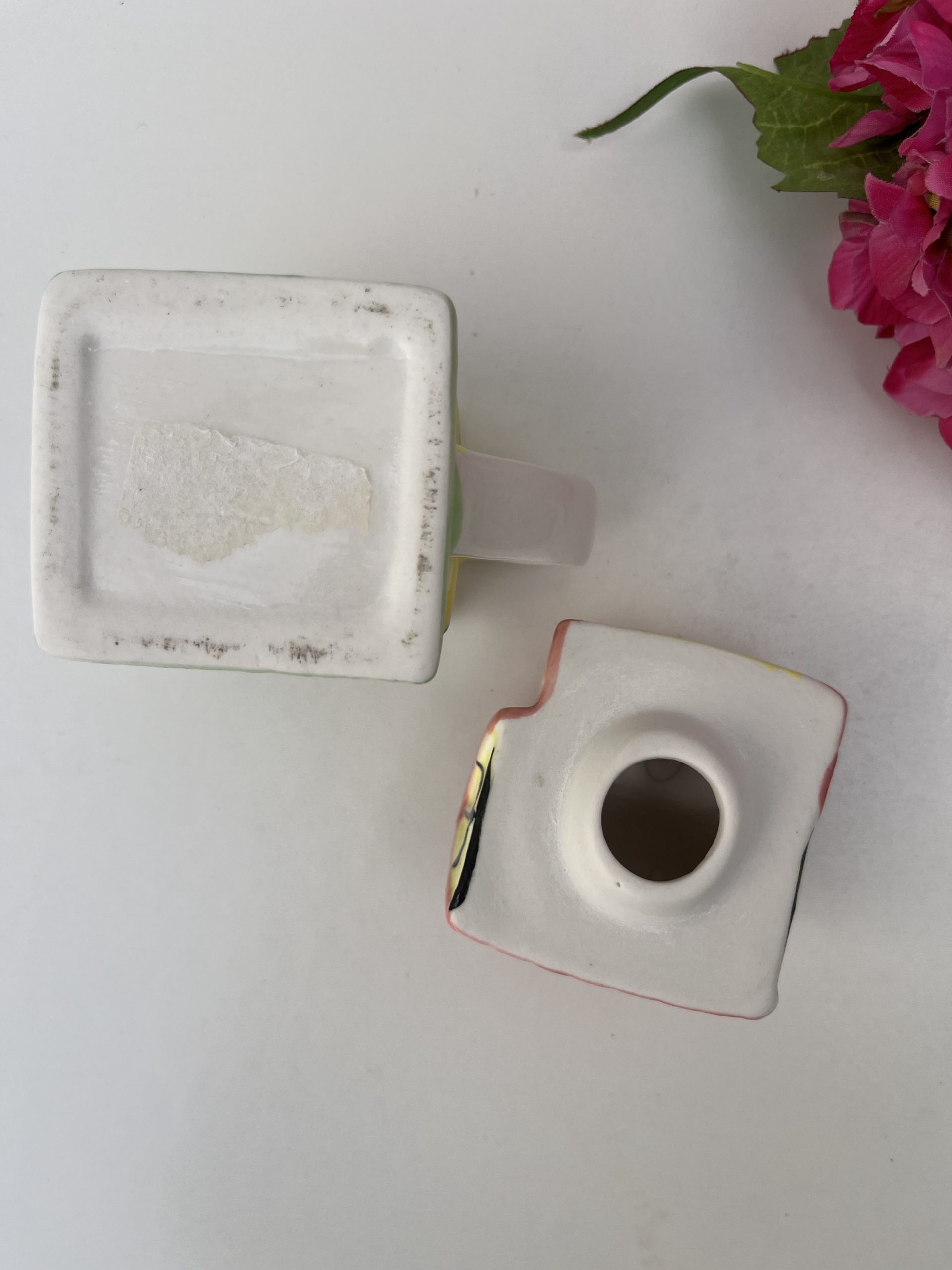 Porcelaine, peinte à la main, état proche du neuf, mesure 10,5cm de hauteur et 11,5cm de largeur.