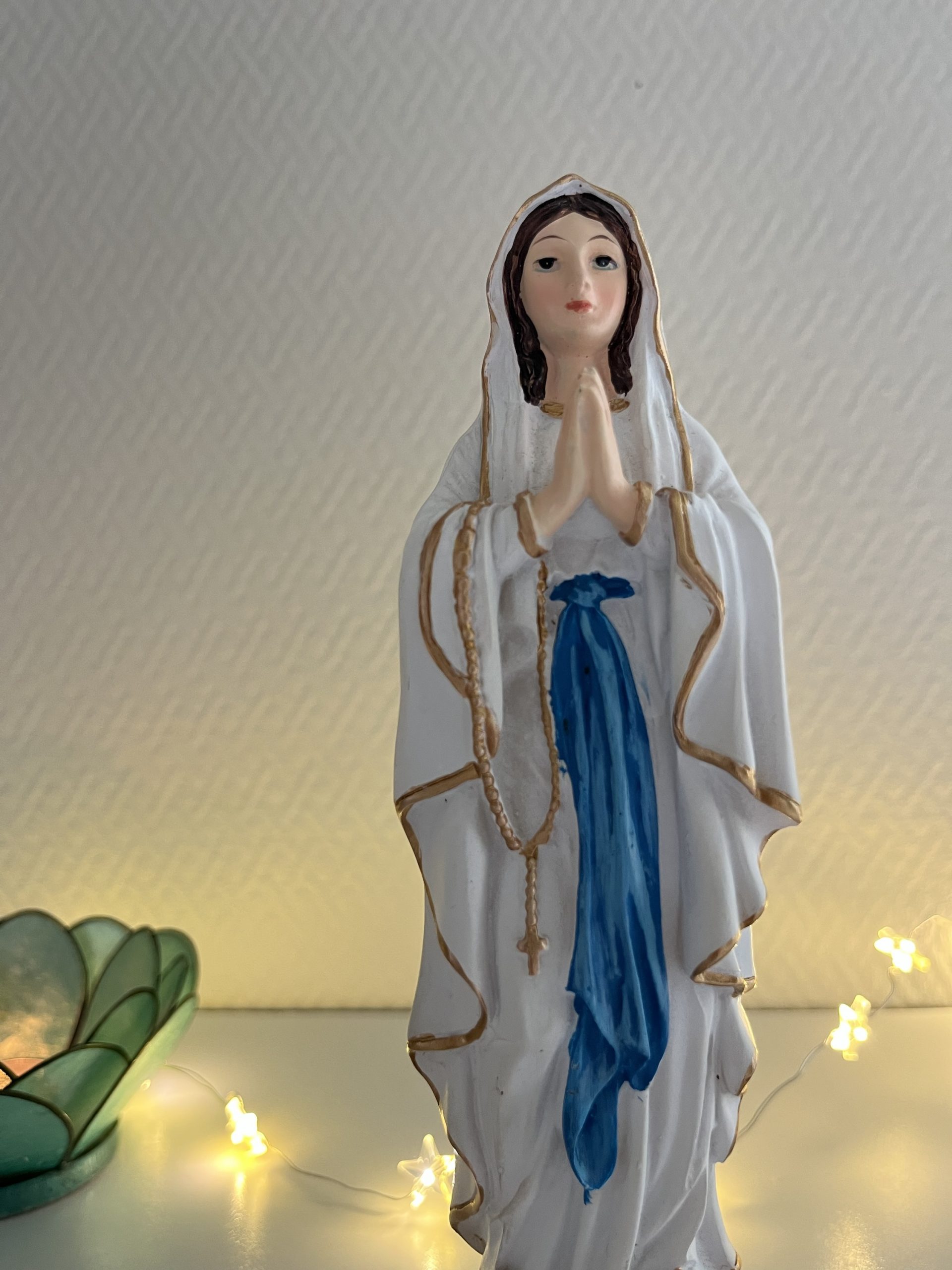 Jolie statue Notre Dame de Lourdes, en résine peinte à la main.