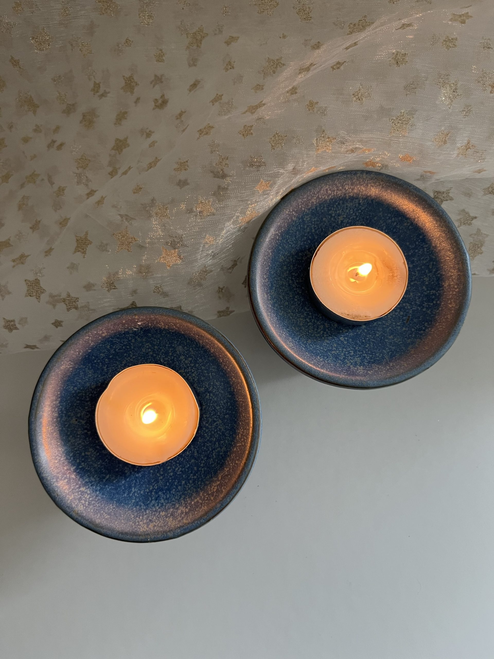 Joli bougeoir en céramique d’un beau bleu, pour bougies type chandelles ou chauufe-plat ( non fournis)