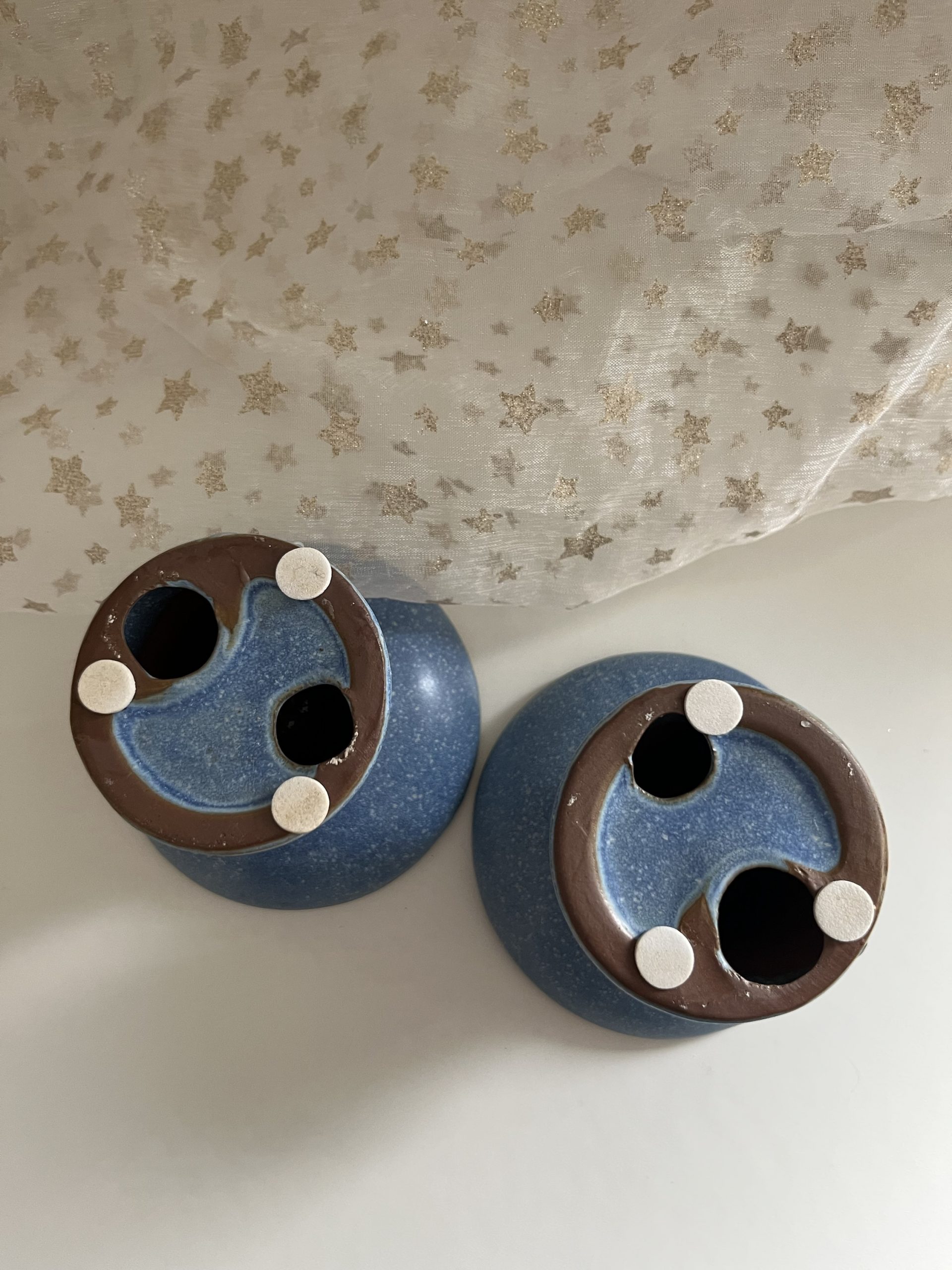 Paire de Bougeoirs Céramique Bleu