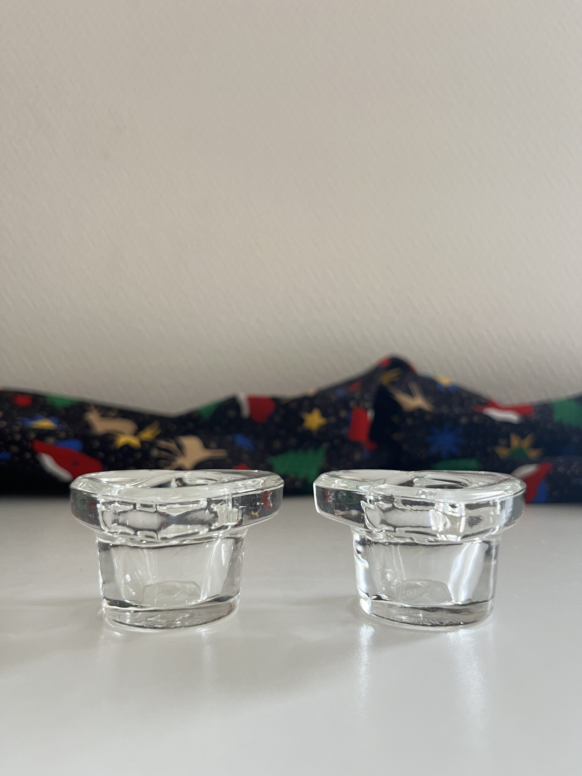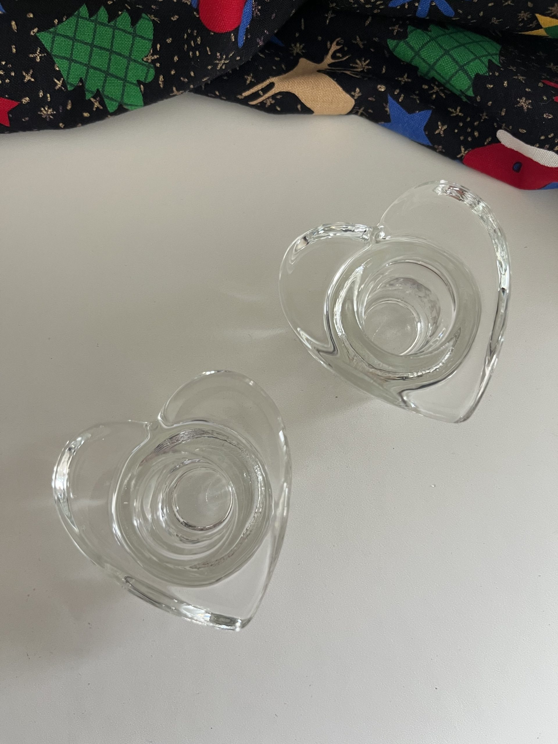 Jolie paire de bougeoirs en verre en forme de cœur, pour bougie type chandelle (non fournie)