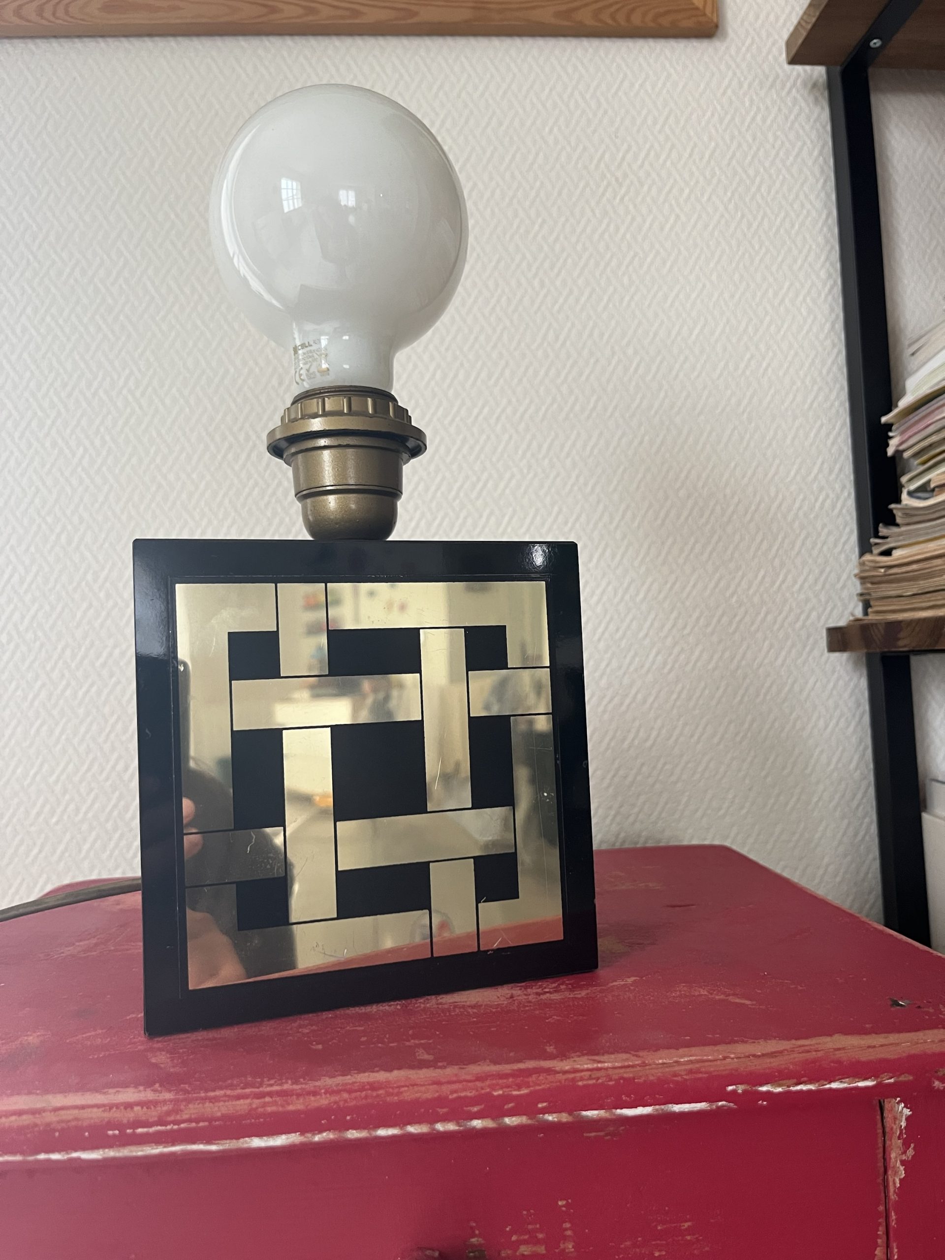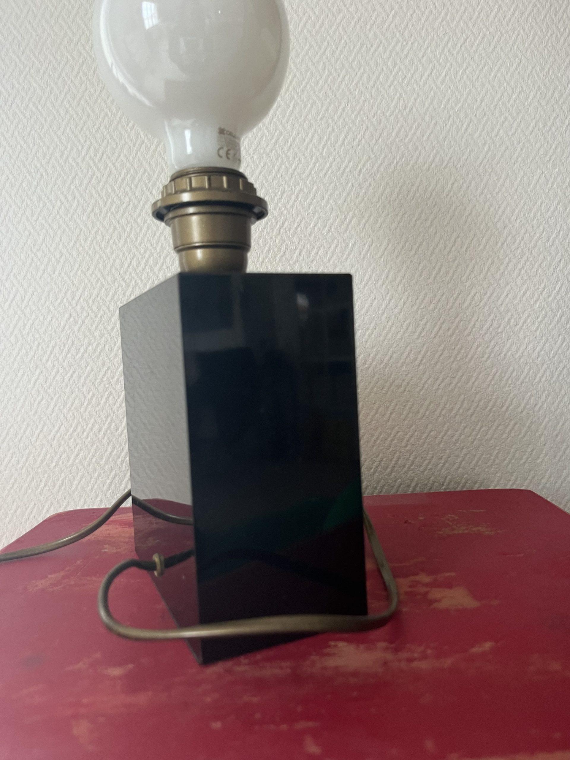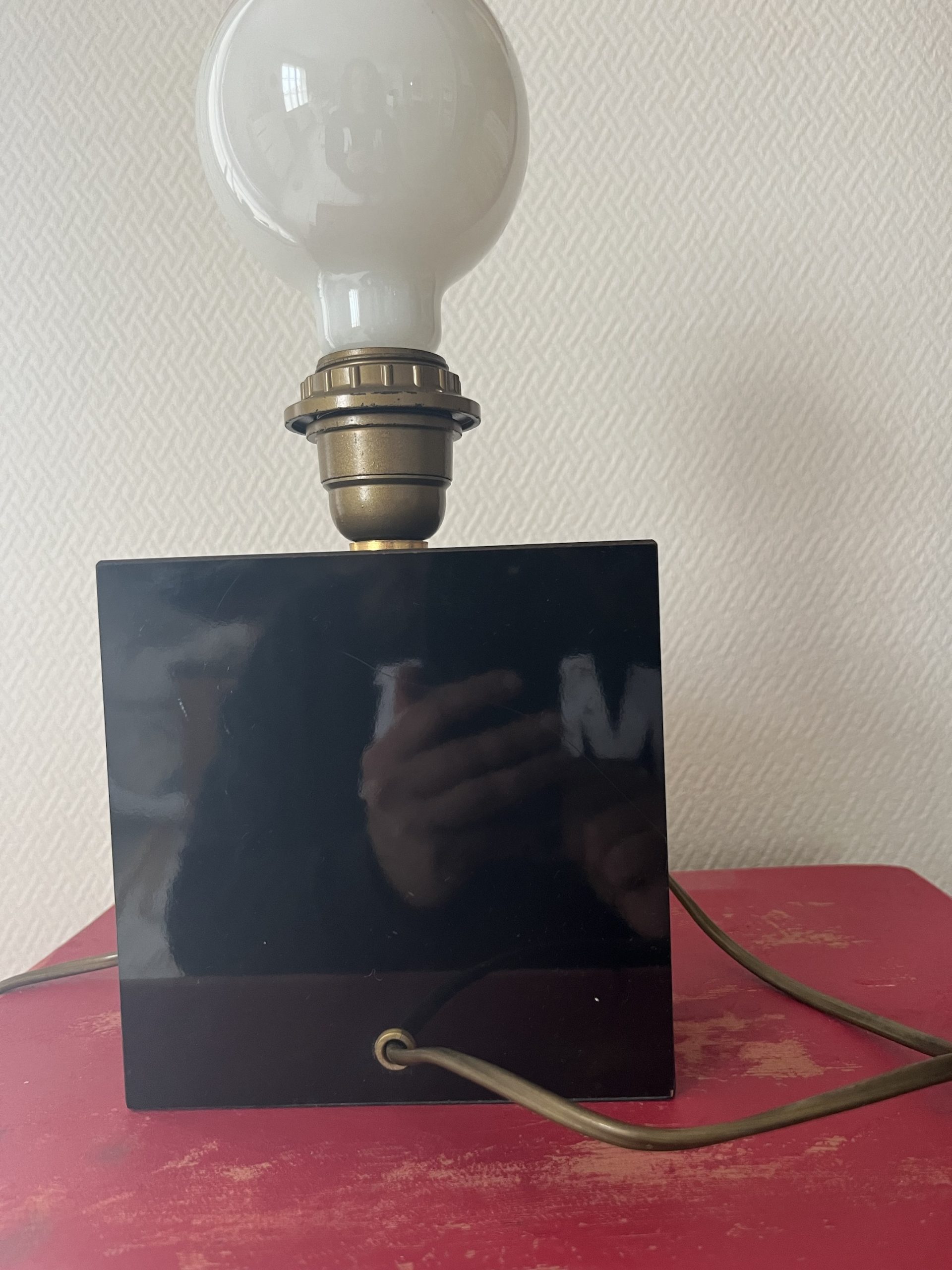 Conseil déco : idéal sur une console, un buffet ou une table de chevet, parfait avec une ampoule opaline ou dorée pour sublimer le contraste noir et laiton doré.