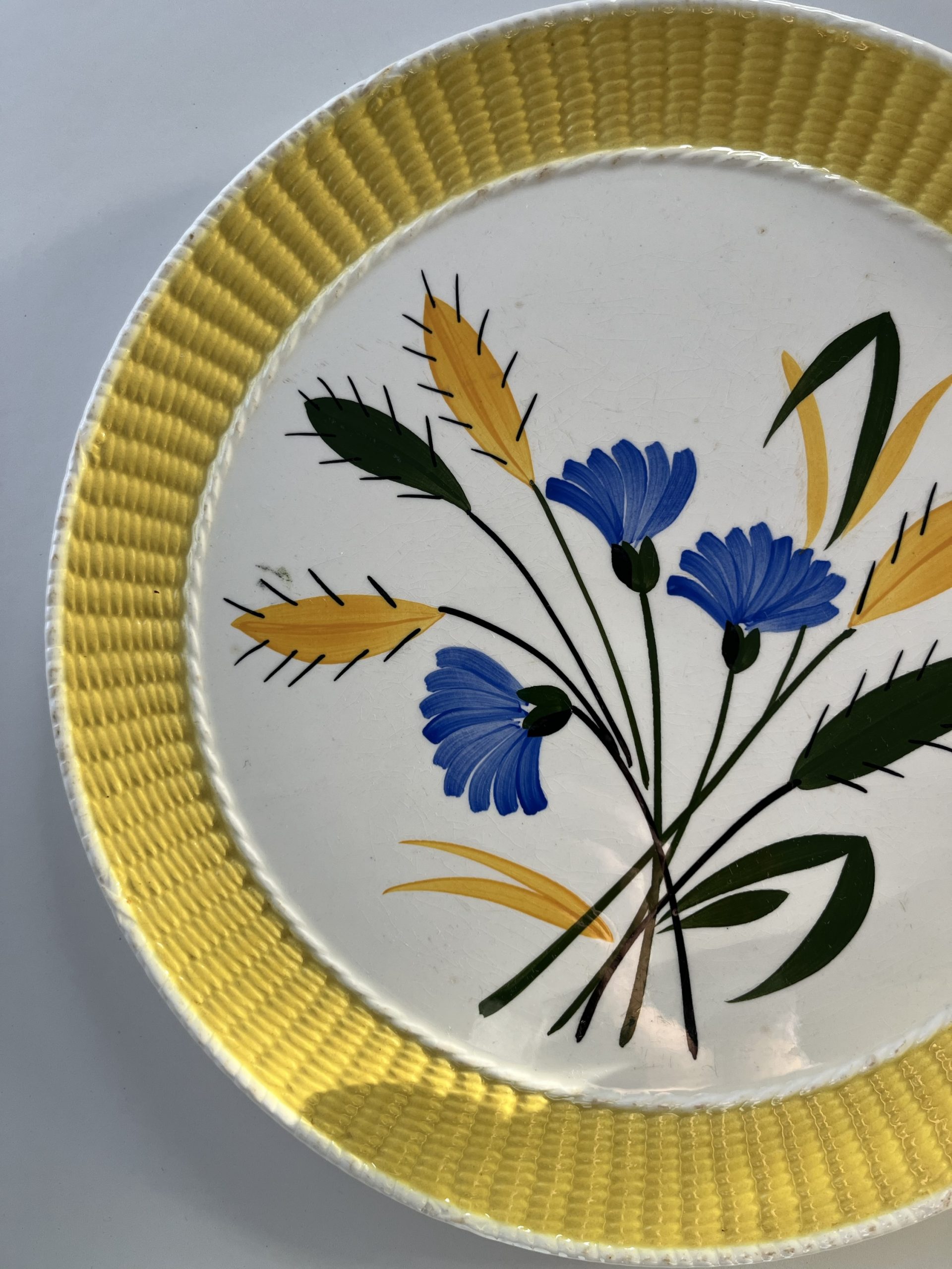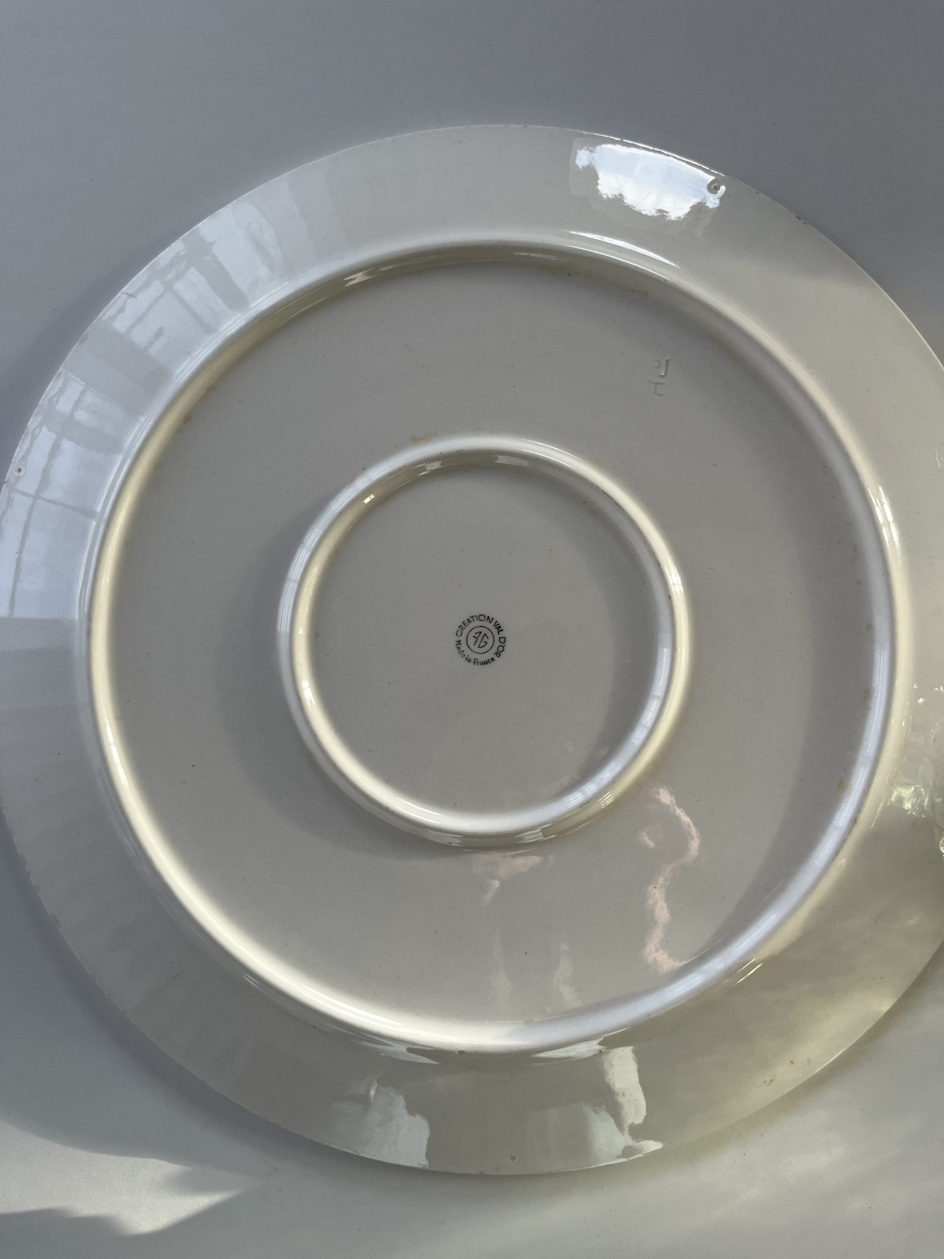 Estampille “Gien Création Val d’Or Made in france”, superbe plat à gâteau ou tarte, aux couleurs lumineuses, en parfait état, pas de fêle, pas d’éclat.