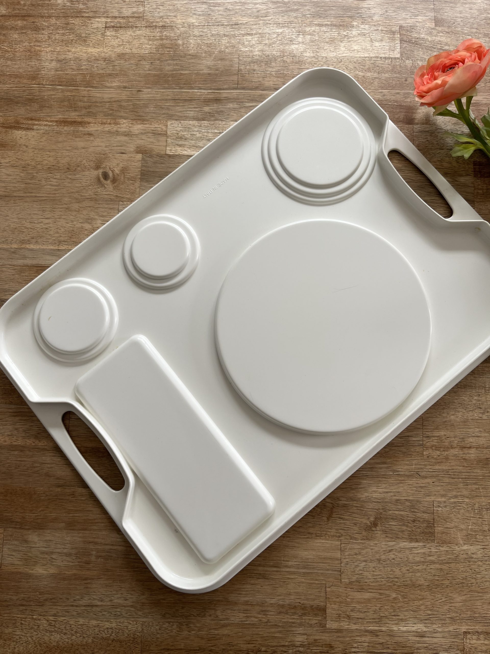 Made Italy, grand plateau petit-déjeuner compartimenté pour y transporter tout le nécessaire.