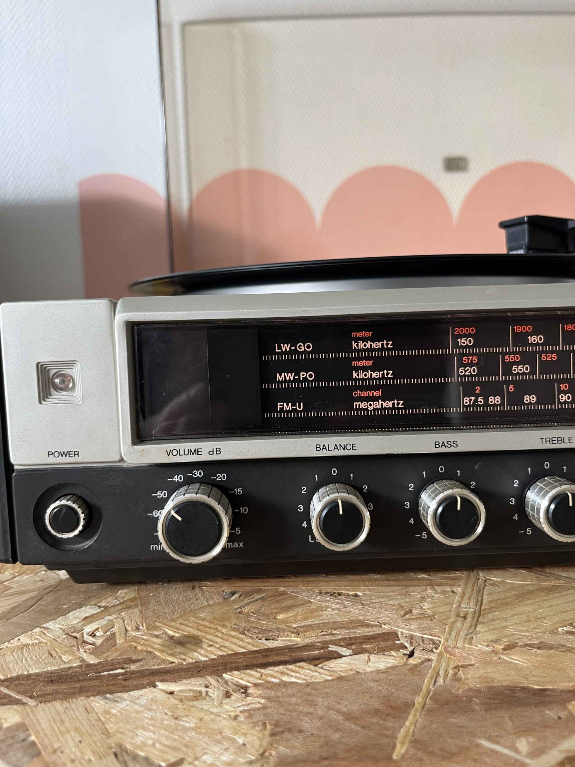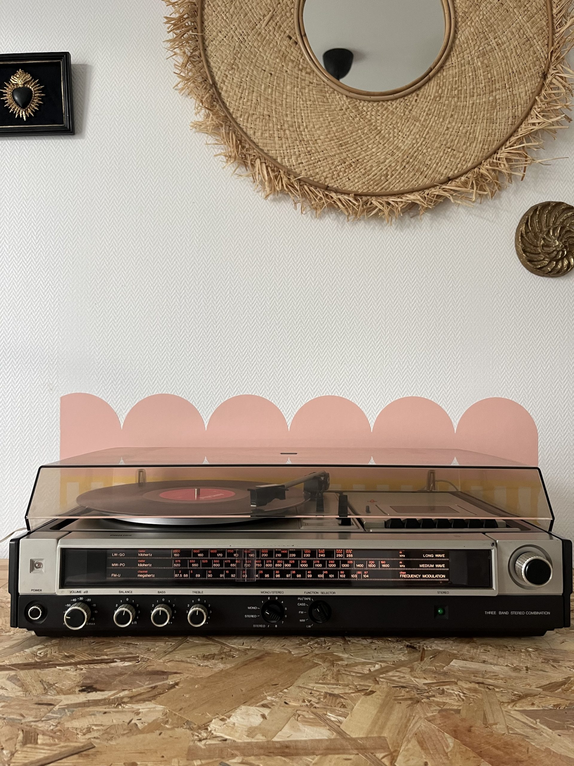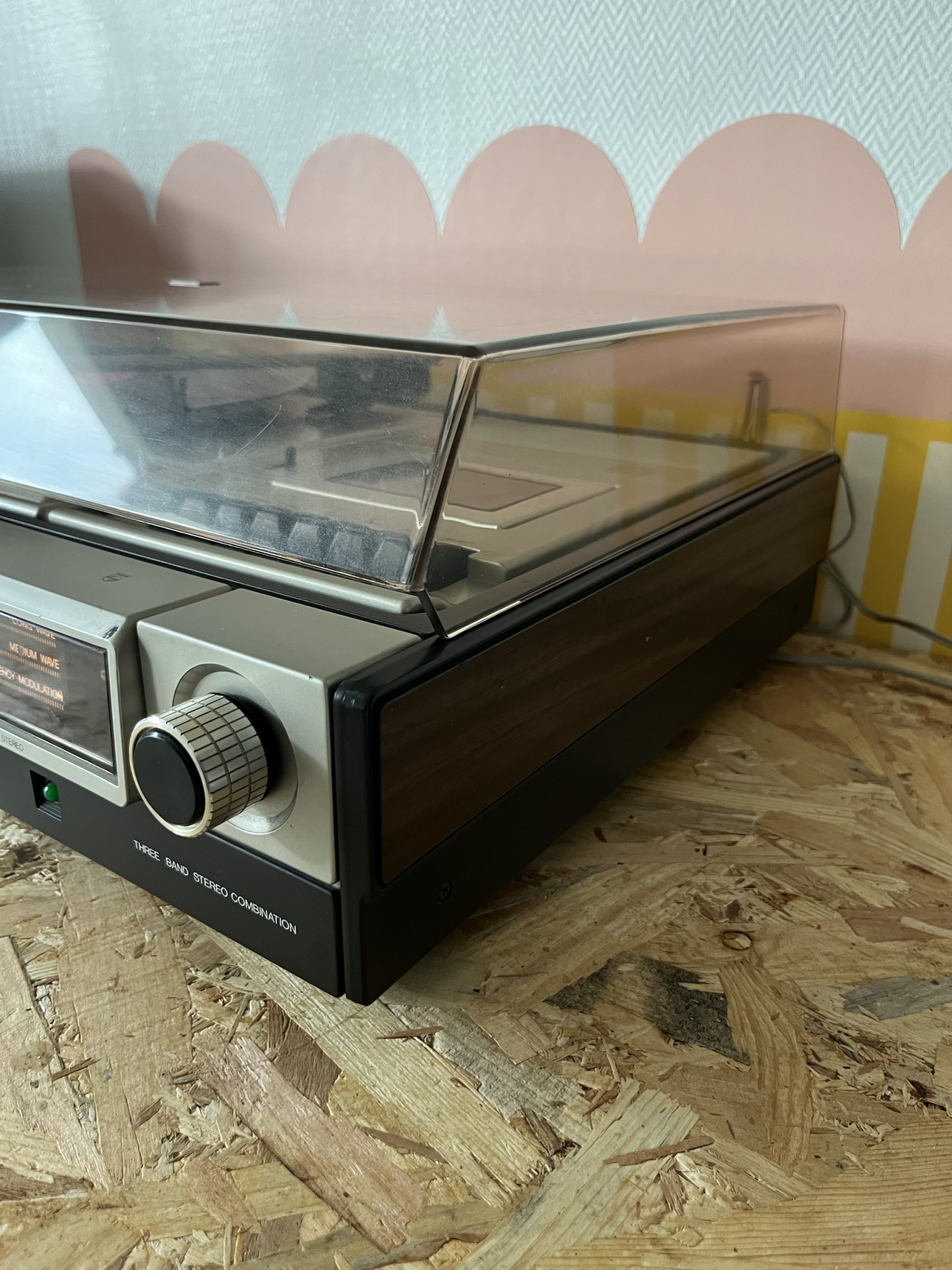 Testée, partie vinyle fonctionne parfaitement ( le diamant a été changé ), radio fonctionne parfaitement(très bonne sensibilité FM, un point fort de Philips à l’époque), partie cassette, le son n’est pas régulier (vague, son monte et descend) à faire réviser par un professionnel.