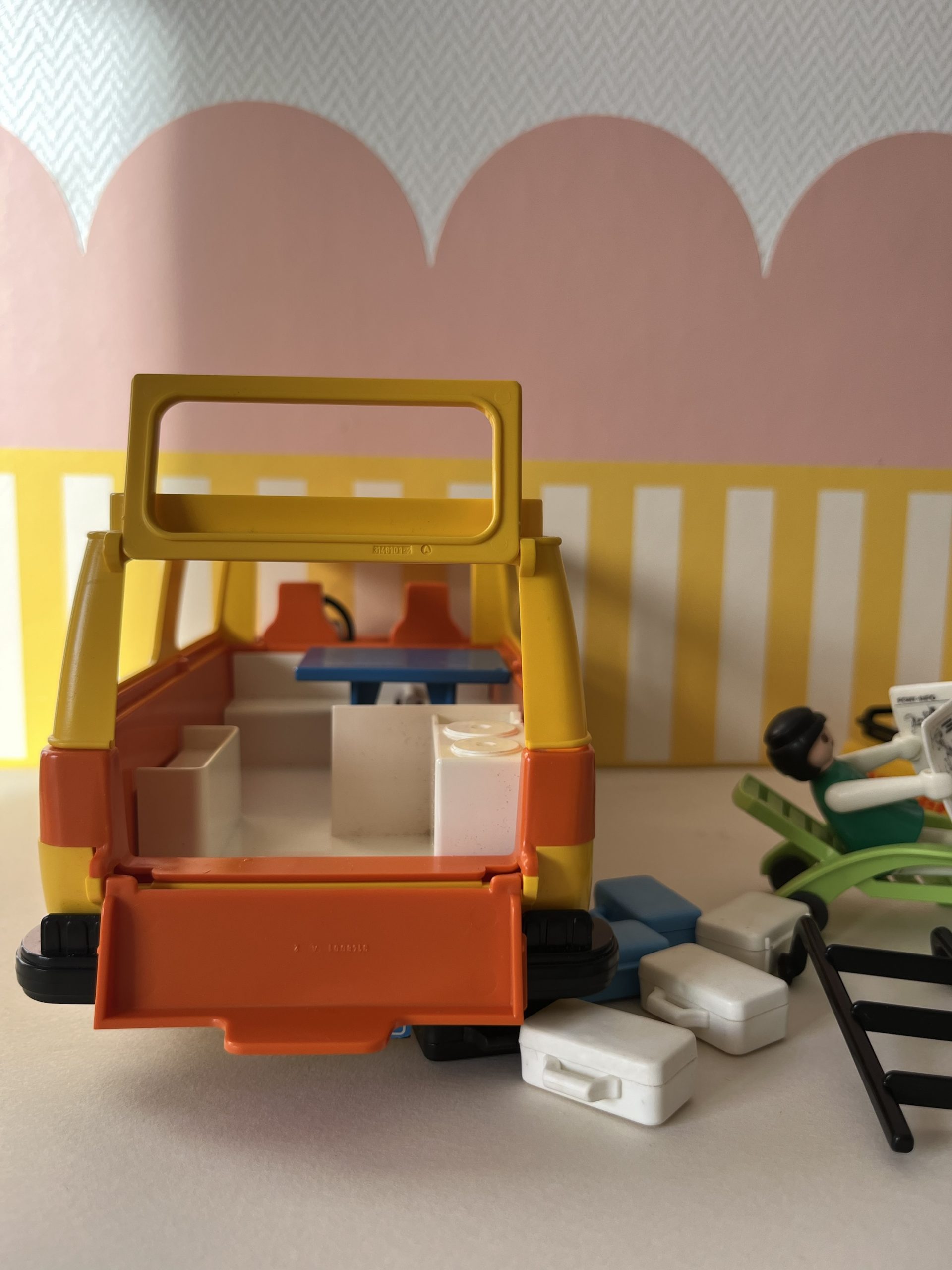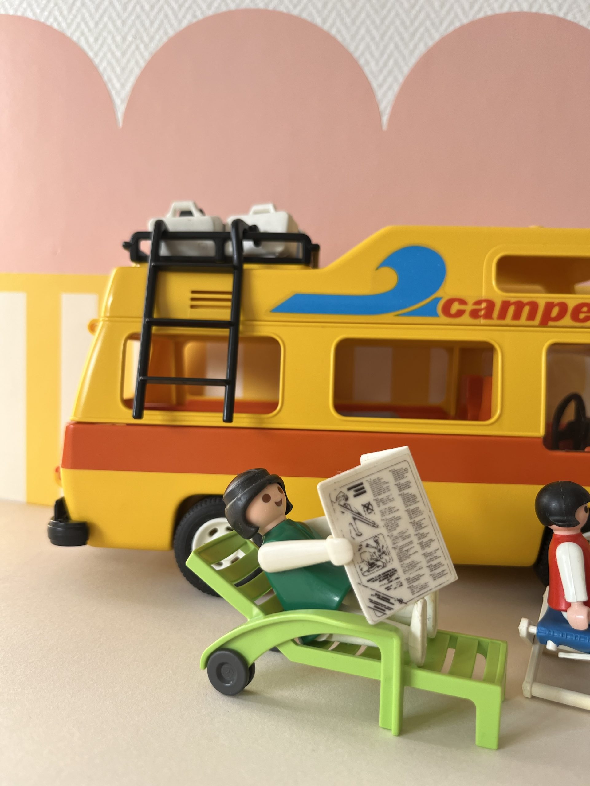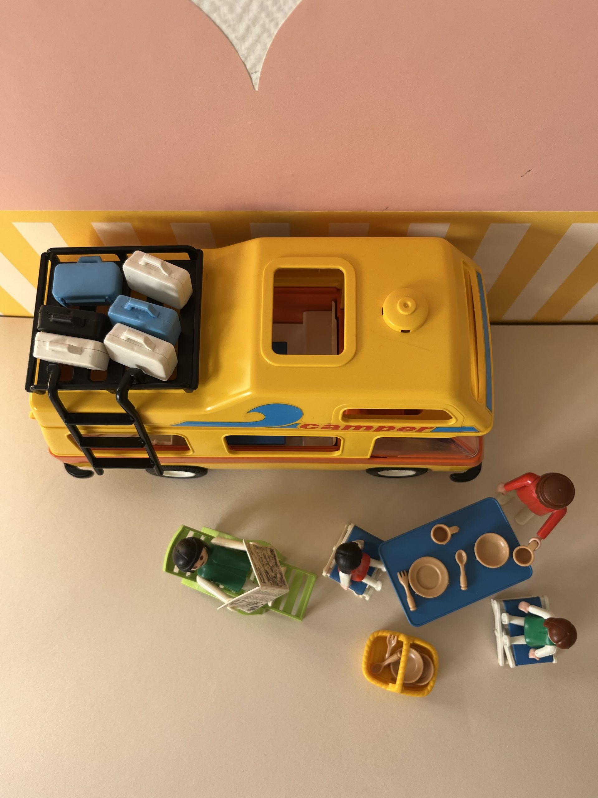 En boite, camping car avec personnages et accessoires.