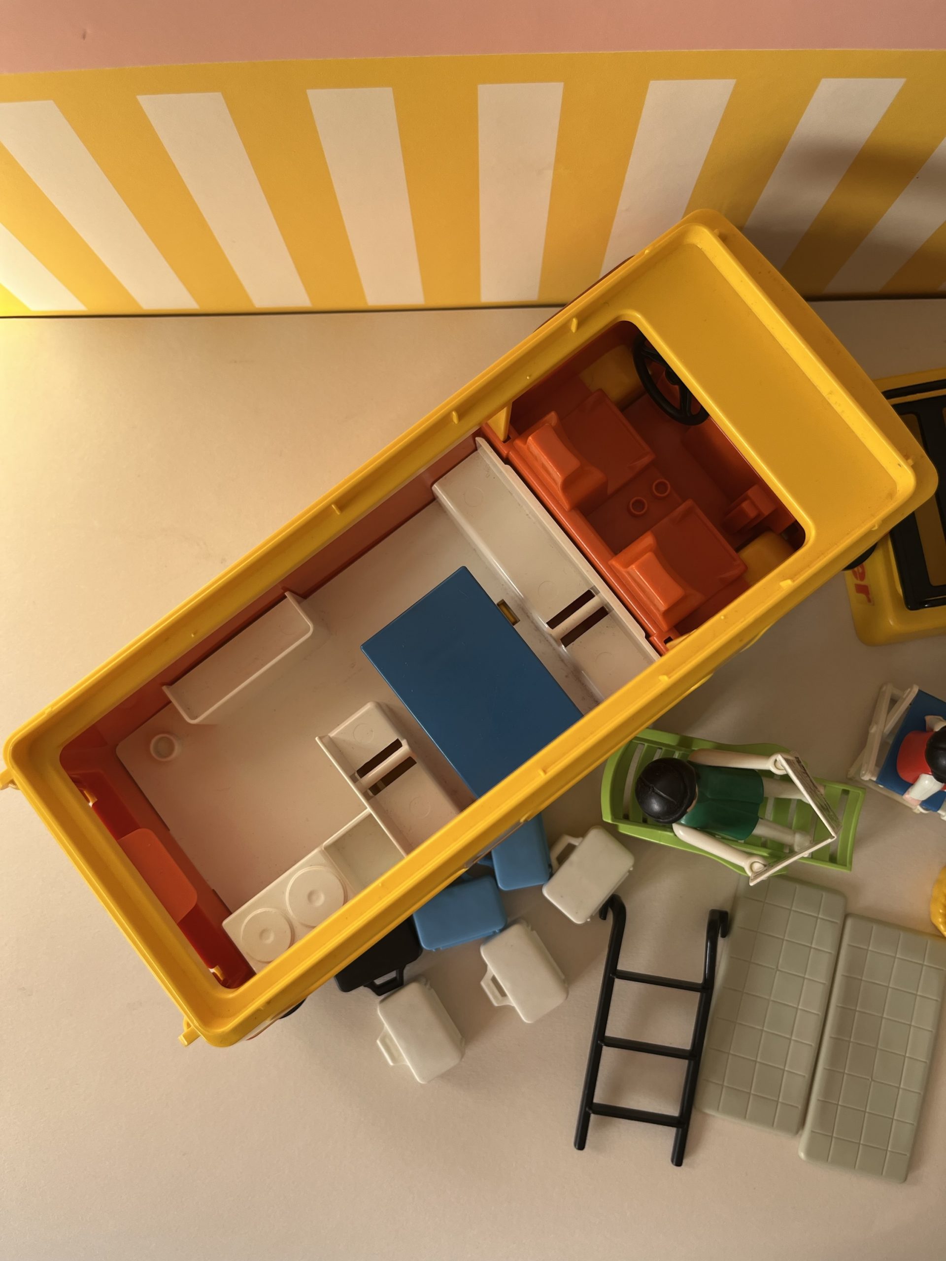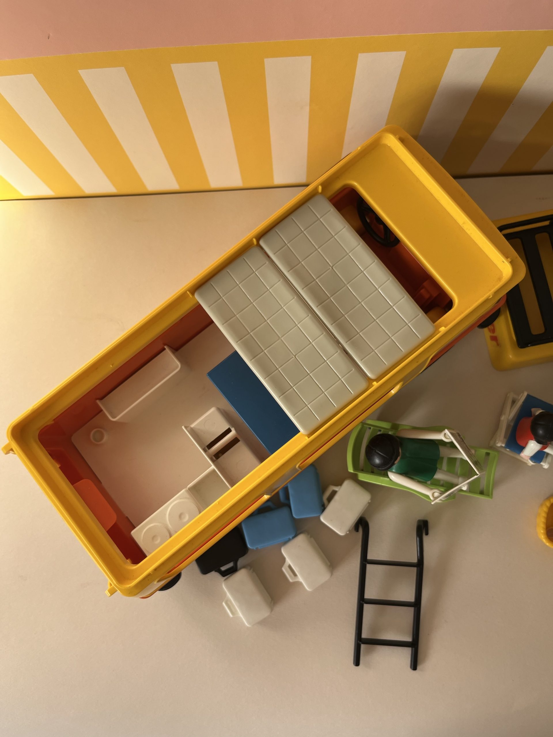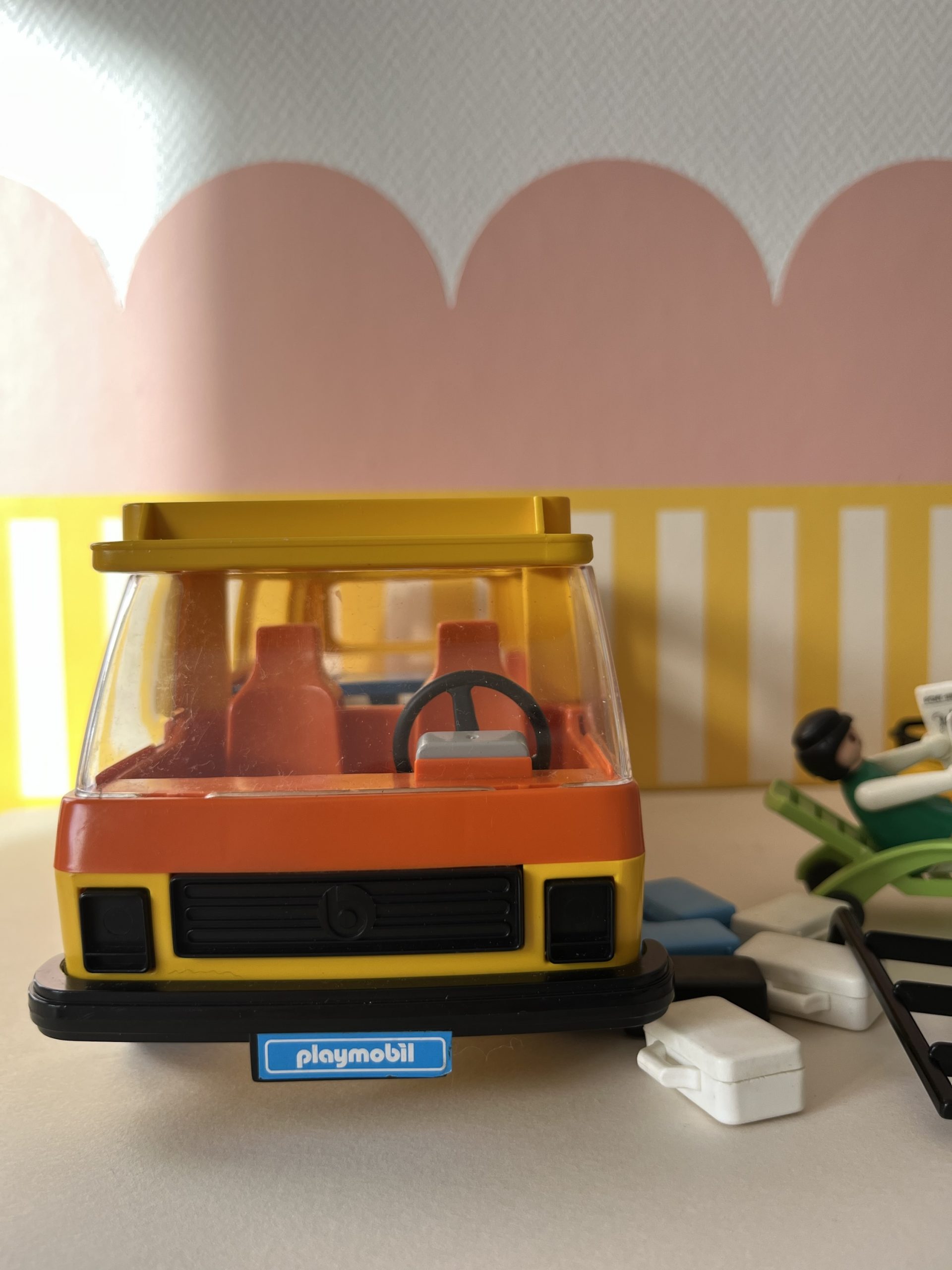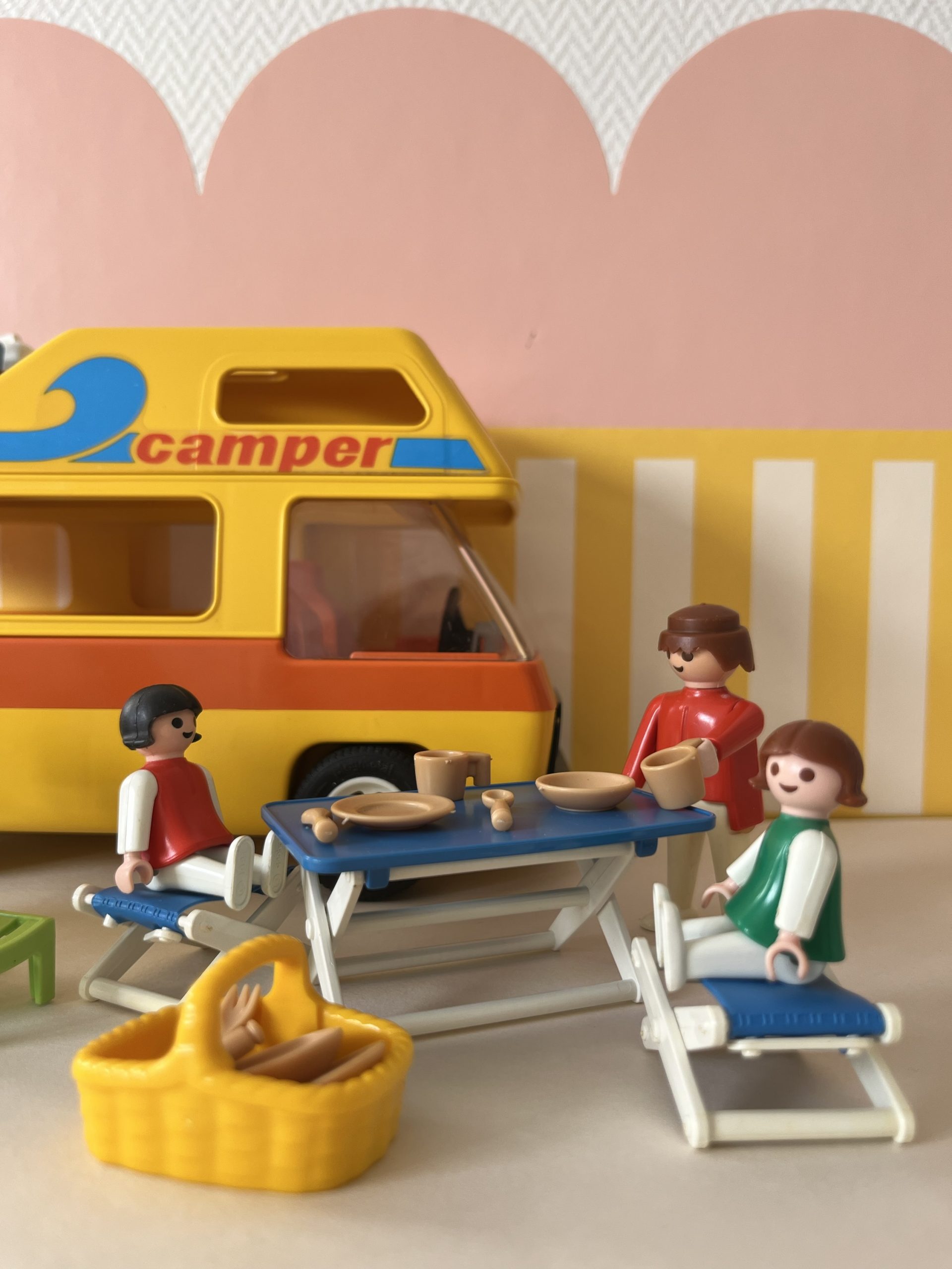 En boite, camping car avec personnages et accessoires.
