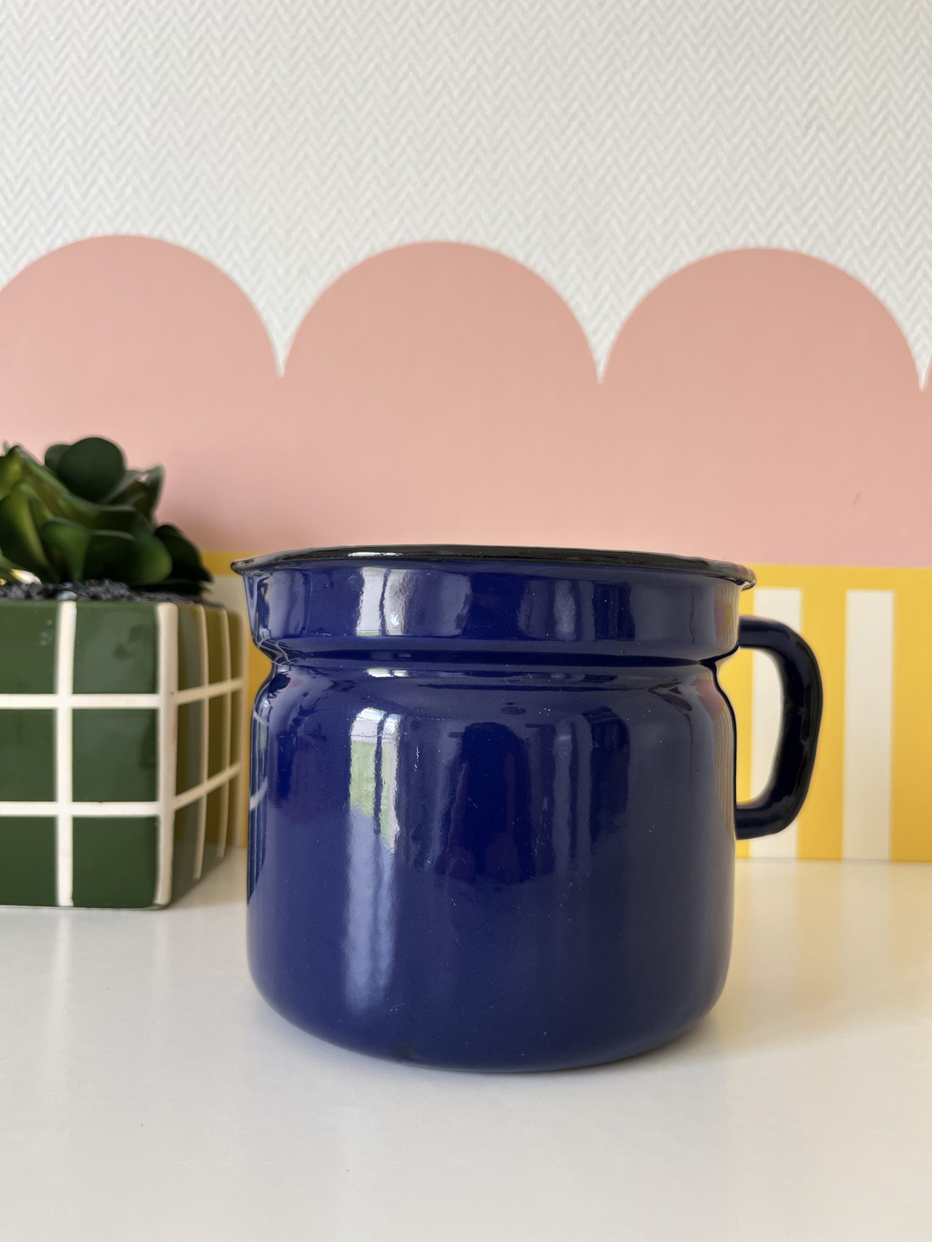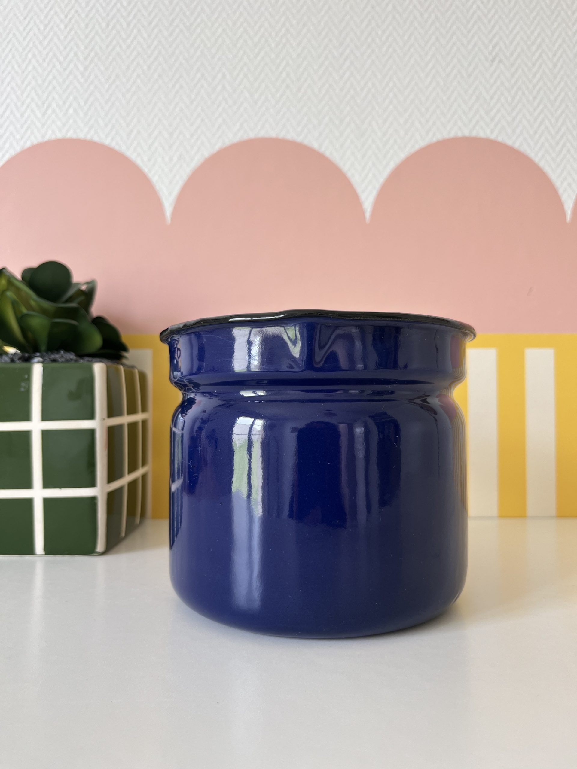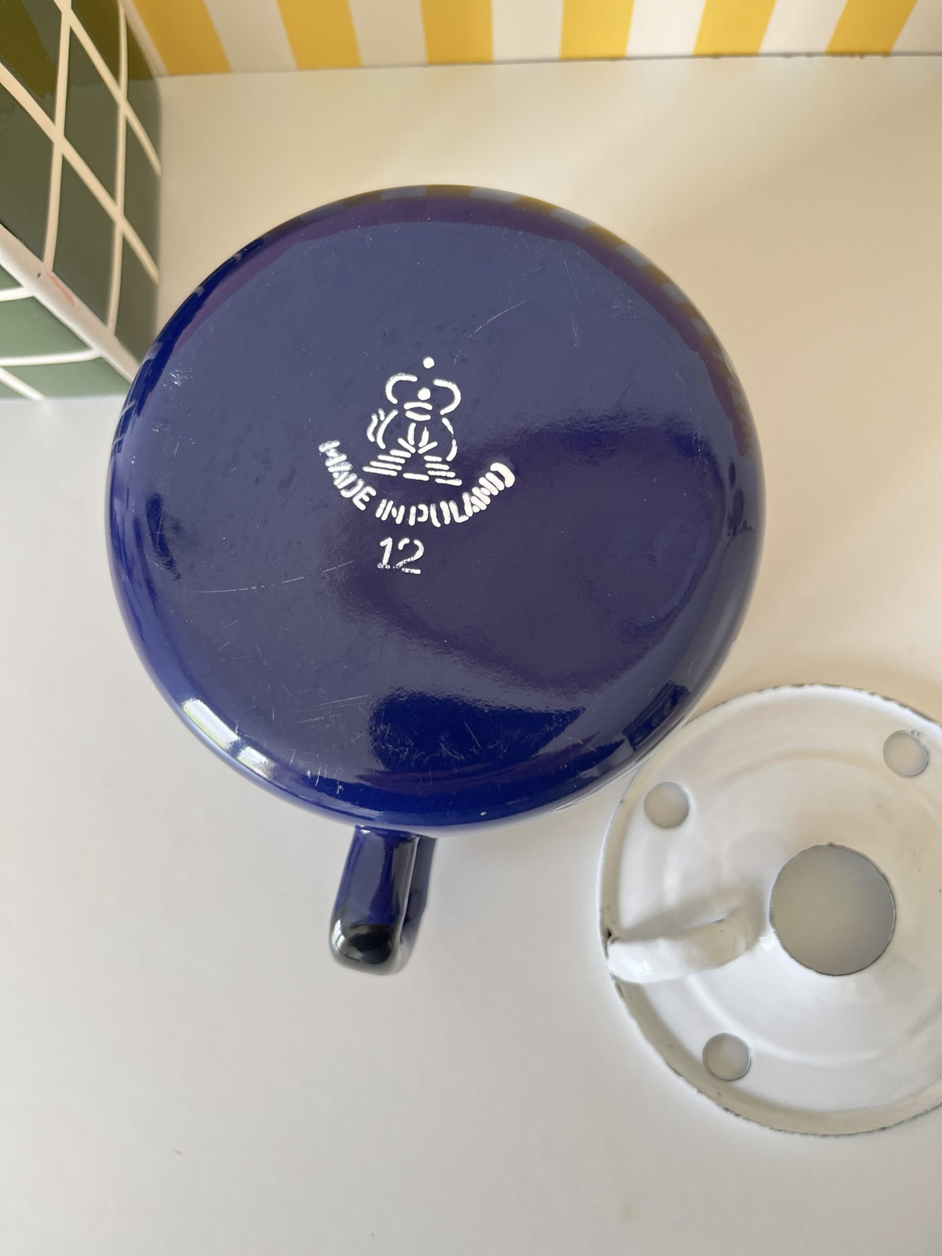 Couleur bleu marine, estampille sur le dessous “made in Poland”, mesure 11cm de hauteur et 13cm de diamètre, parfait état !