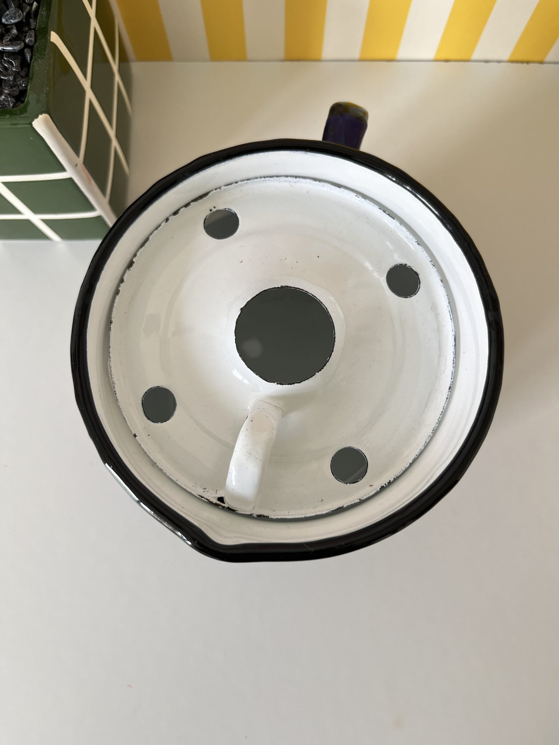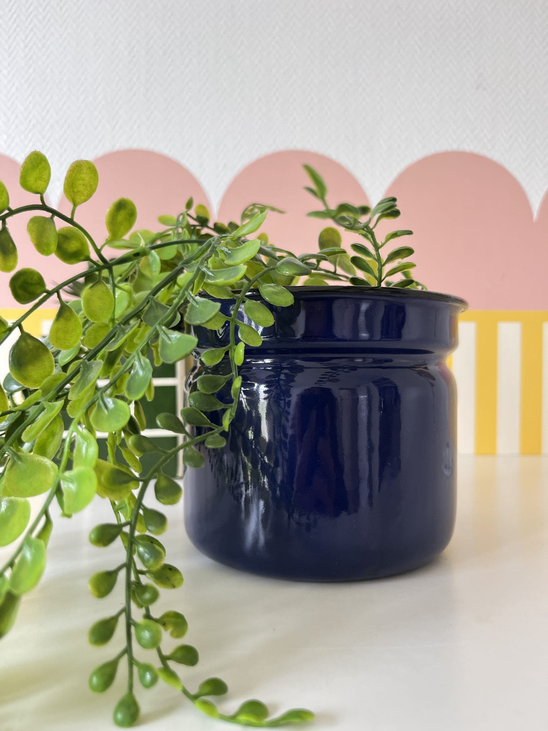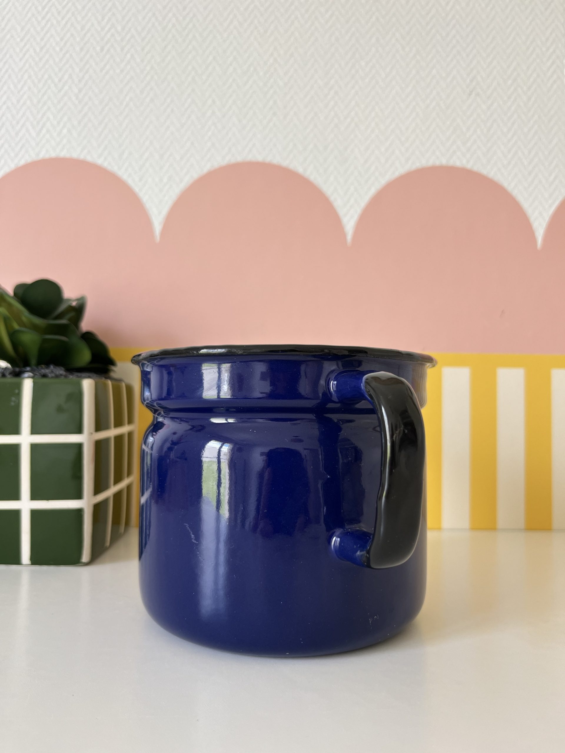 Couleur bleu marine, estampille sur le dessous “made in Poland”, mesure 11cm de hauteur et 13cm de diamètre, parfait état !