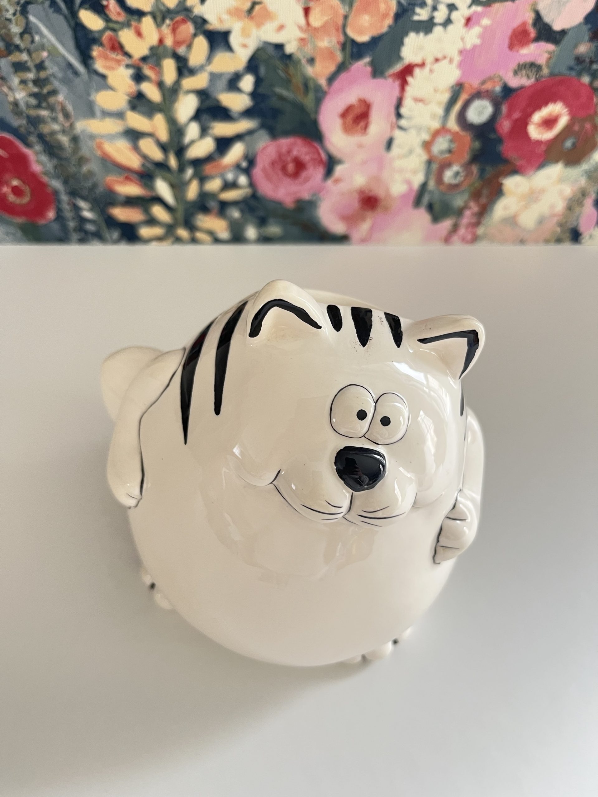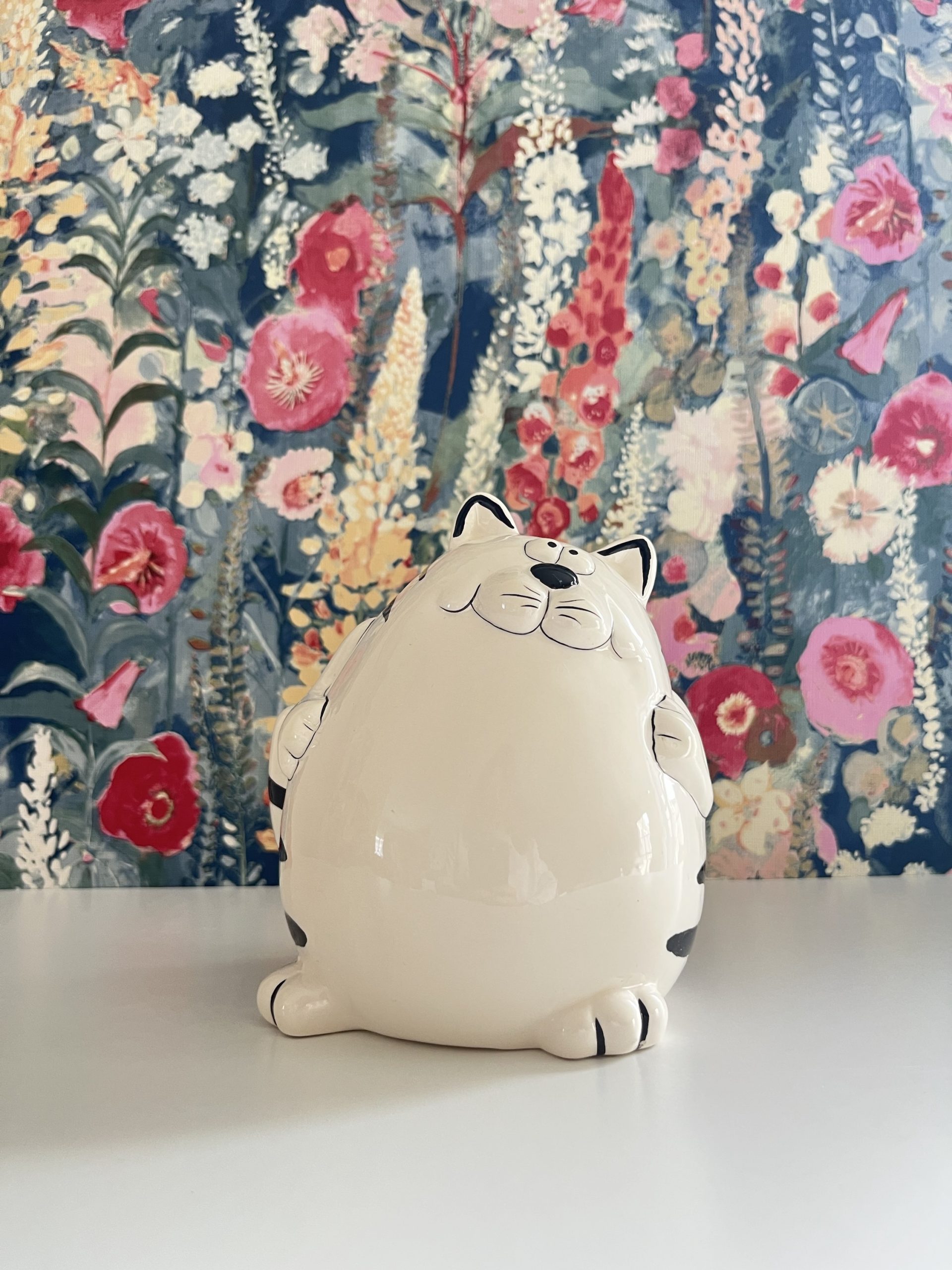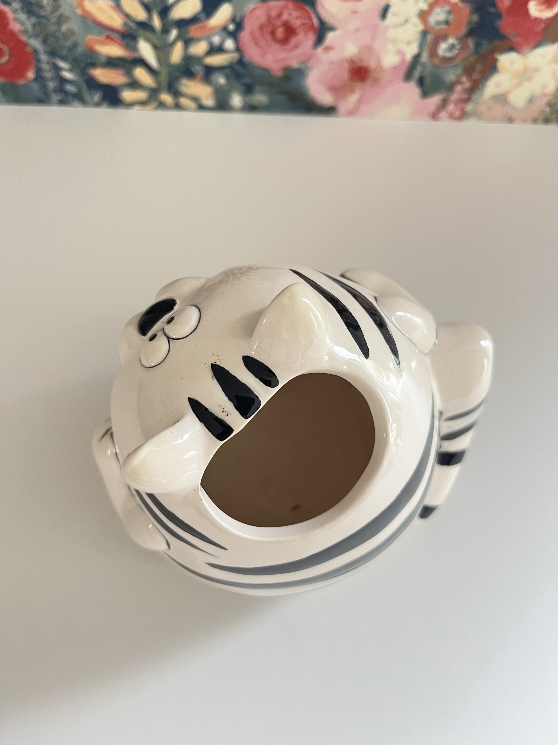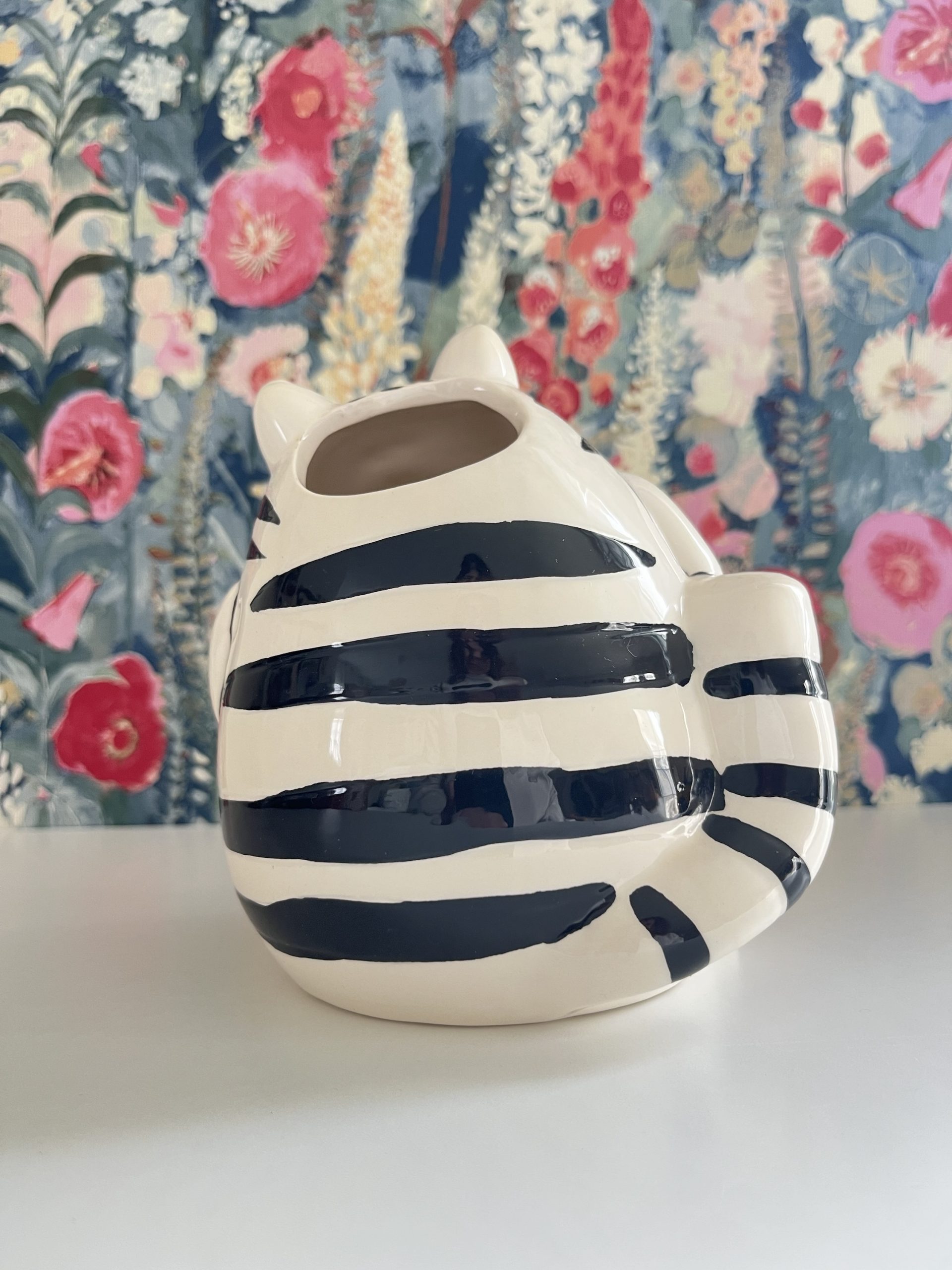 On craque pour chat en céramique, noir et blanc, pour vos ustensiles de cuisines ou à détourner pour y ranger vos pinceaux, feutres etc…