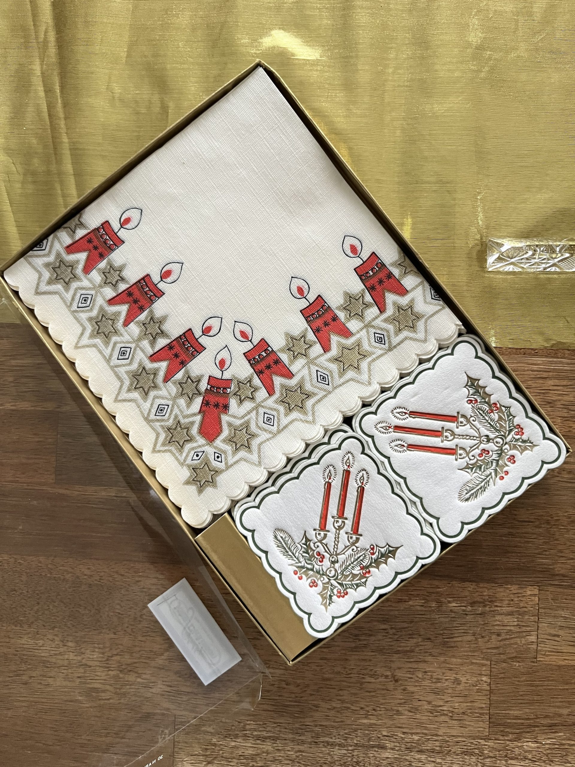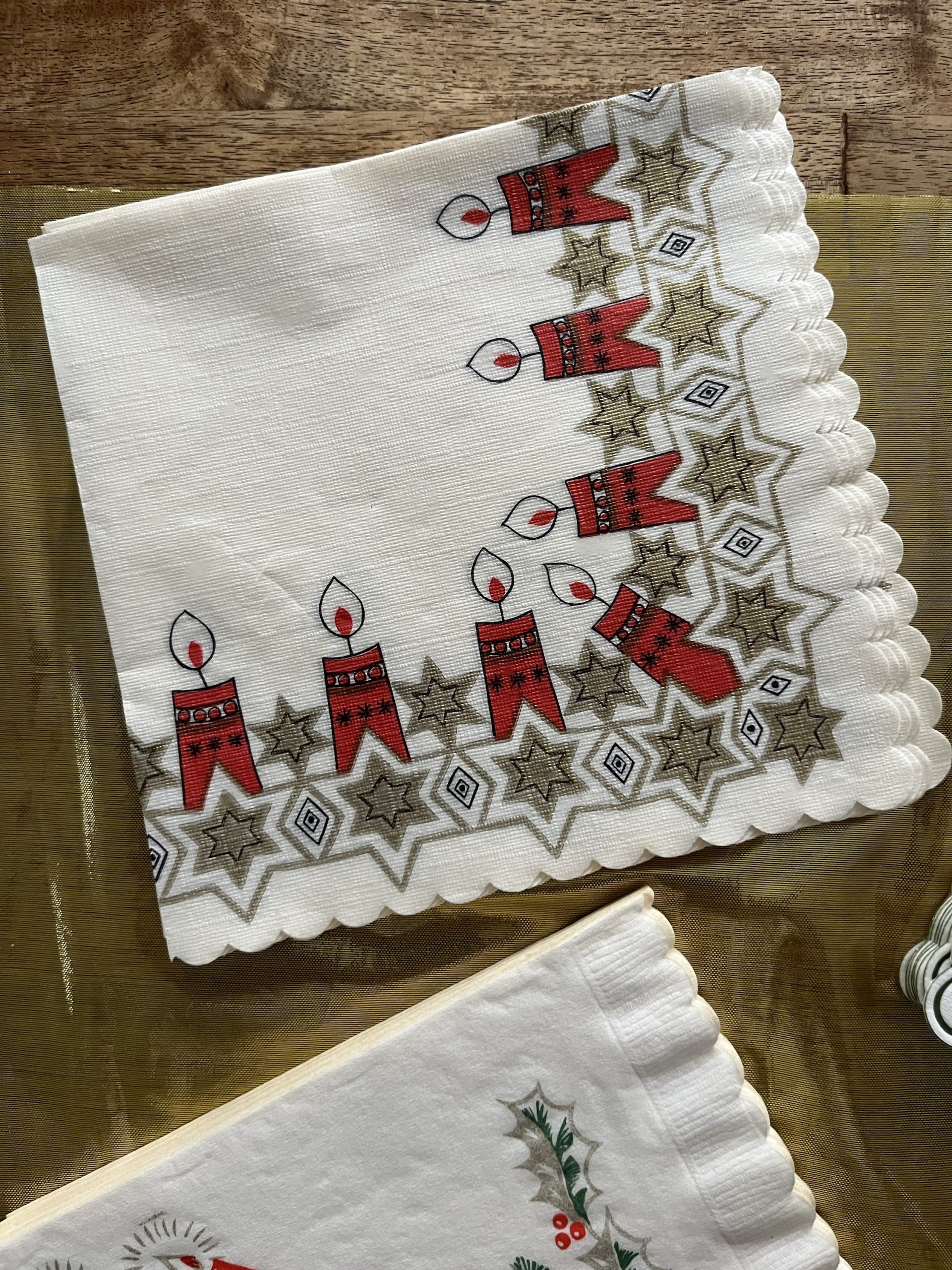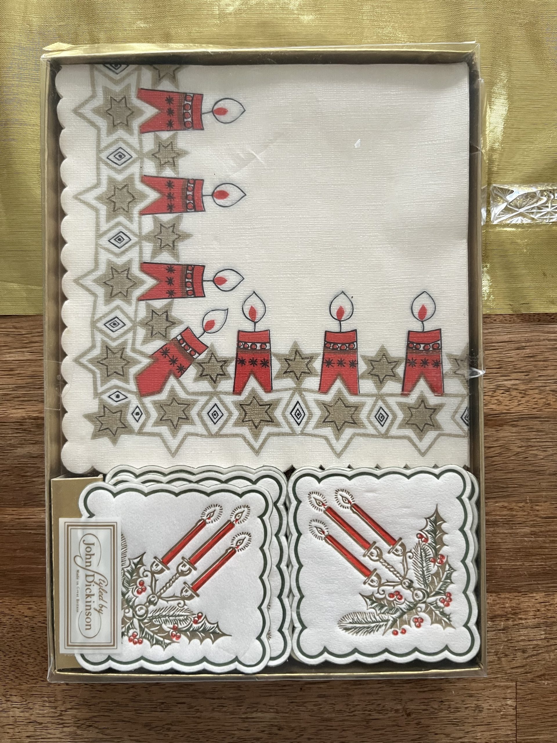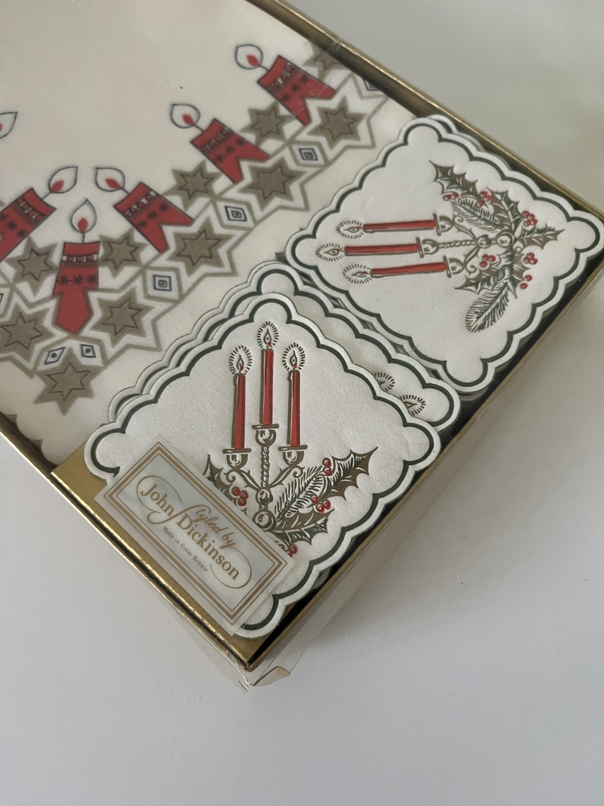 Années 60, John Dickinson, made in Great Britain, set composé de 28 serviettes de table (deux modèles, voir photos) et 19 dessous de verre en papier intissé.