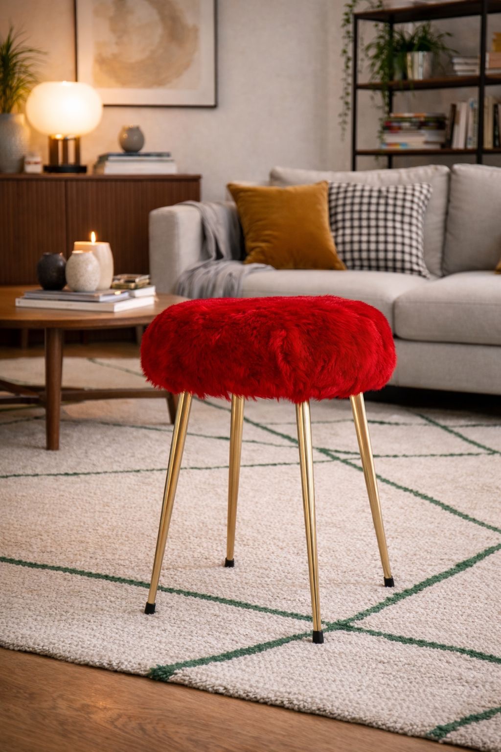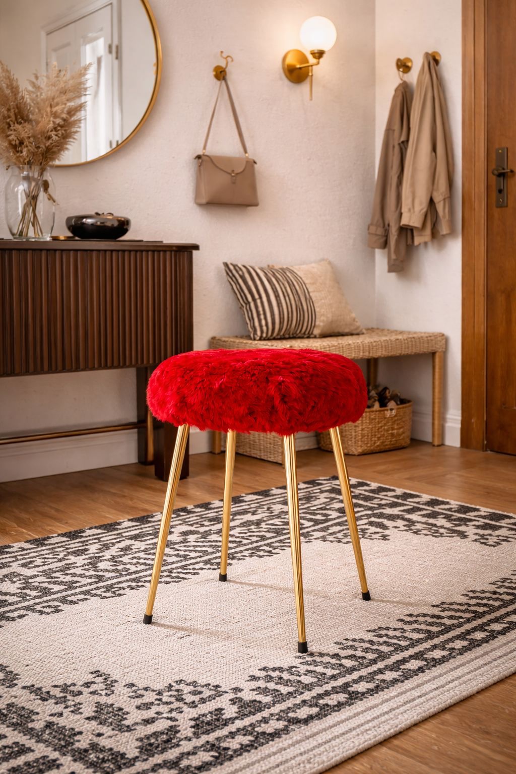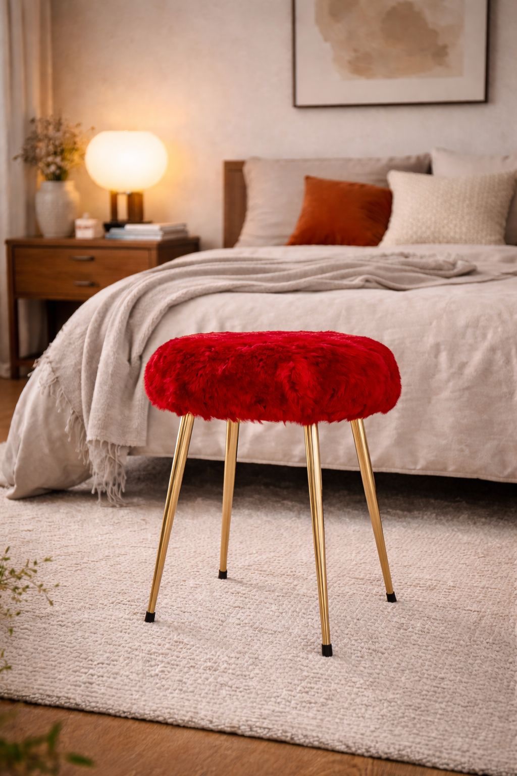 Kitsh à souhait mais on adore ! ce tabouret à l’assise confortable et son revêtement en fausse fourrure rouge est une pièce indispensable dans votre intérieur !